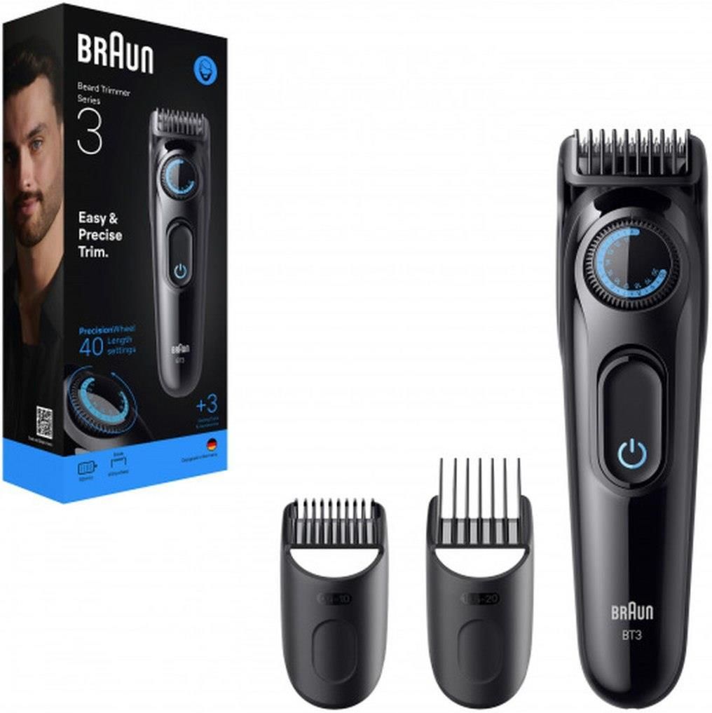 Braun Series 3 BT3520 Trymer do zarostu Braun Series 3 zapewnia idealną pielęgnację bez wysiłku. Trymer jest wyposażony w niezwykle ostre ostrze do precyzyjnego golenia oraz pokrętło PrecisionWheel z 40 ustawieniami długości w odstępach co 0,5 mm, co zapewnia doskonałą kontrolę przy każdym pociągnięciu. Niezależnie od tego, czy przycinasz, czy konturujesz, ten trymer dla mężczyzn gwarantuje doskonałe rezultaty za każdym razem. Trymer do zarostu Series 3 oferuje 50-minutowy czas działania bezprzewodowego, dzięki czemu z łatwością uzyskasz oczekiwany efekt. Zawartość pudełka: trymer do zarostu, 2 grzebienie, szczoteczka do czyszczenia Doskonała kontrola Precyzyjnie stwórz dokładnie taką stylizację, jaką chcesz za pomocą 40 ustawień długości z dokładnością co 0,5 mm. Dokładnie przycinanie włosów bez wysiłku jest w zasięgu ręki Trwałość o wyjątkowej jakości Superostre ostrze radzi sobie z każdym rodzajem zarostu. Jego konstrukcja umożliwia płynne i szybkie przycinanie bez potrzeby wielokrotnego poprawiania. Precyzyjne przycinanie Wszechstronne nasadki do przycinania gwarantują jeszcze większą precyzję. Sprawdzą się idealnie na różnej długości włosów, by zadbać o wymarzone efekty za każdym razem