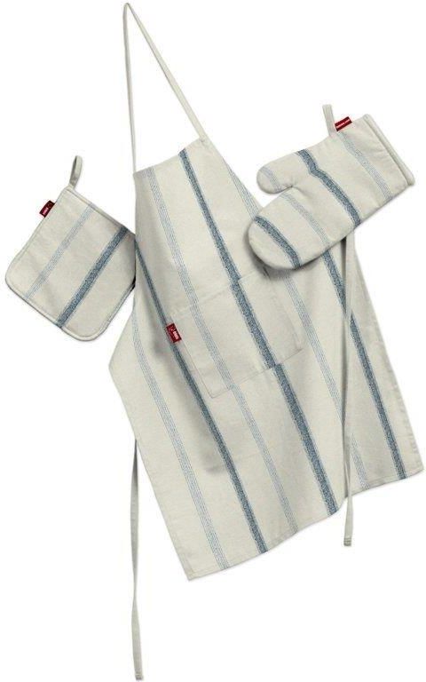 Dekoria Komplet Kuchenny Fartuch Rękawica I Łapacz Ecru Tło Niebieskie Paski Prochowice