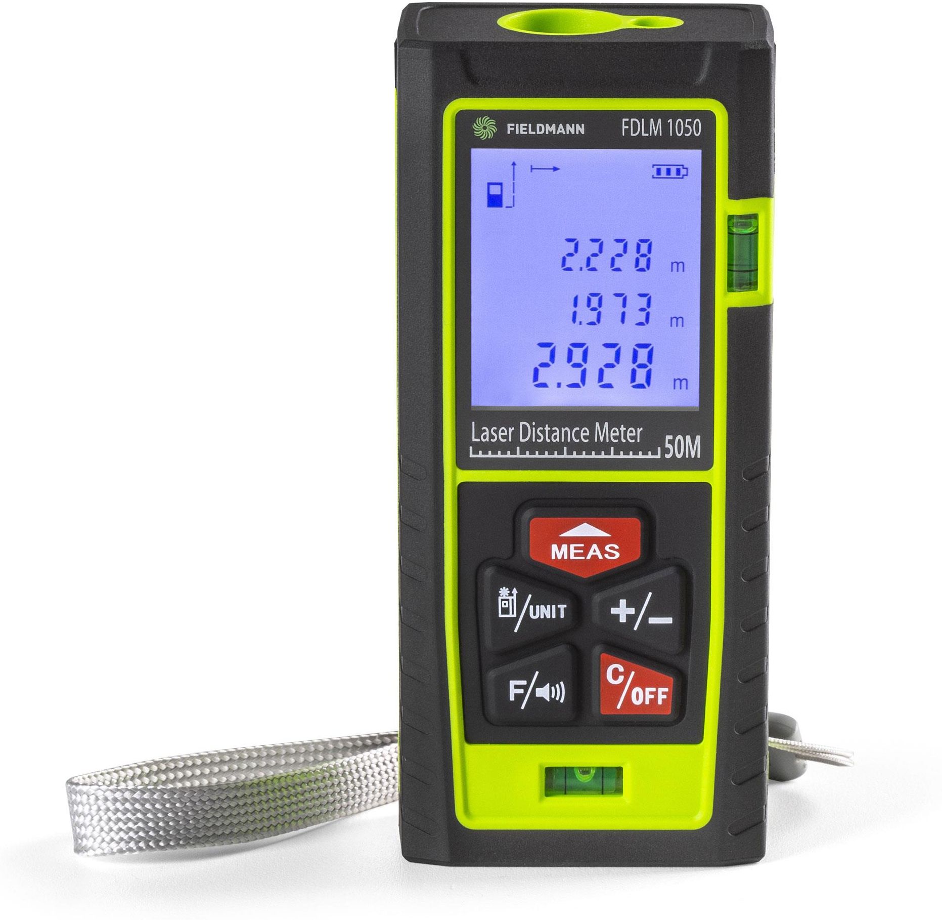 Miernik Laserowy Dalmierz 50m Fieldmann FDLM 1050 Parametry techniczne: Dalmierz laserowy Jednostki: m / stopy Wbudowana poziomica Wiele funkcji pomiarowych Zakres pomiarowy: 0,05 - 50 m Dokładność pomiaru: +/- 1,5 mm Typ baterii: 3 x AAA (w zestawie) Funkcje brzęczyka i podświetlenia Funkcja pomiaru zakrzywionego obszaru Laser pomiarowy do 50m. Laserowy miernik odległości, powierzchni i objętości jest doskonałą pomocą podczas planowania budynku lub rekonstrukcji wewnątrz i na zewnątrz. Miernik jest bardzo dokładny nie tylko dzięki wbudowanej poziomicy i może służyć do pomiaru odległości od 5 cm do 50 m. Podczas pomiaru powierzchni lub objętości wystarczy skierować laser na rogi mierzonego obiektu zgodnie z instrukcjami i diagramem bezpośrednio w mierniku. Opakowanie zawiera 3 baterie AAA do ołówka. Kluczowe cechy: Pomiar odległości, powierzchni i objętości Wykonywanie obliczeń bezpośrednio w urządzeniu Nadaje się do użycia wewnątrz i na zewnątrz Odległości pomiarowe: do 50 metrów Zasilany 3 bateriami AAA (w zestawie) Bilans części maszyn baterie, pasek na nadgarstek, torba na pasek Parametry techniczne: Dalmierz laserowy Jednostki: m / stopy Wbudowana poziomica Wiele funkcji pomiarowych Zakres pomiarowy: 0,05 - 50 m Dokładność pomiaru: +/- 1,5 mm Typ baterii: 3 x AAA (w zestawie) Funkcje brzęczyka i podświetlenia Funkcja pomiaru zakrzywionego obszaru