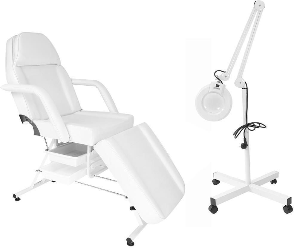 Fotel kosmetyczny z kuwetami biały + lampa lupa ze statywem - PAPILIO