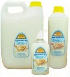 Delikatne mydło w płynie do mycia rąk z dodatkiem środka antybakteryjnego. Przebadane dermatologicznie, nie powoduje alergii, nie podrażnia, posiada neutralne pH dla skóry człowieka. Zawierający substancje aktywne: anionowe związki powierzchniowo czynne, niejonowe związki powierzchniowo czynne. Działa antybakteryjnie na organizmy: Pseudomonas Aeruginosa, Coli i Escherichia Coli, Staphylococcus, Salmonella, Clostridium. Oznaczenie suchej masy pozostałości po suszeniu: 44,72% ZASTOSOWANIE: - w sektorze medycznym na terenie: szpitali, klinik, aptek oraz w studiach urody (salony odnowy biologicznej, zakłady fryzjersko - kosmetyczne, solaria itp.). - w sektorze spożywczym na terenie zakładów: przetwórstwa mięsnego, rybnego, warzywno owocowego, rozlewni napojów, ciastkarsko-piekarniczych. - na terenie placówek: oświatowo – wychowawczych, szkolnych, przedszkolnych, żłobków; jak również na terenie sklepów, restauracji, barów i hoteli oraz innych miejscach użyteczności publicznej. Stosuje się do mycia rąk, zalecane wszędzie tam gdzie jest duża rotacja skupisk ludzkich i jest duże narażenie na zanieczyszczenia bakteriami. POSIADA Certyfikat Badania Mikrobiologicznego i odpowiada wymaganiom normy PN-85/C-77023 Więcej informacji o środkach dezynfekcyjnych i higienicznych