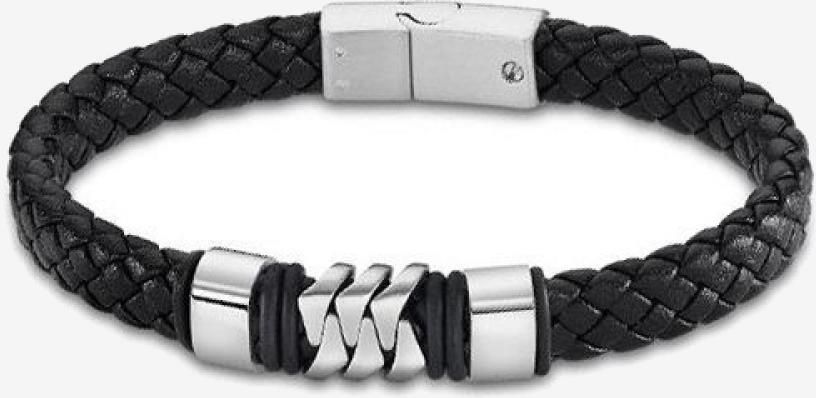 modna bransoletka męska, wykonana ze skóry i polerowanej stali nierdzewnej 316L, pleciony czarny skórzany pasek, szerokość 8,5 mm, długość 21 cm, zintegrowane elementy wykonane z polerowanej i matowej stali nierdzewnej, zapięcie magnetyczne z logo Grupa docelowa: mężczyźni Marka: Lotus Style Kolor biżuterii: srebrny Materiał biżuterii: stal szlachetna Tekstura biżuterii: błyszcząca Typ biżuterii: bransoletka LOTUS JEWELS JEWELRY Mod. LS2104-2/1