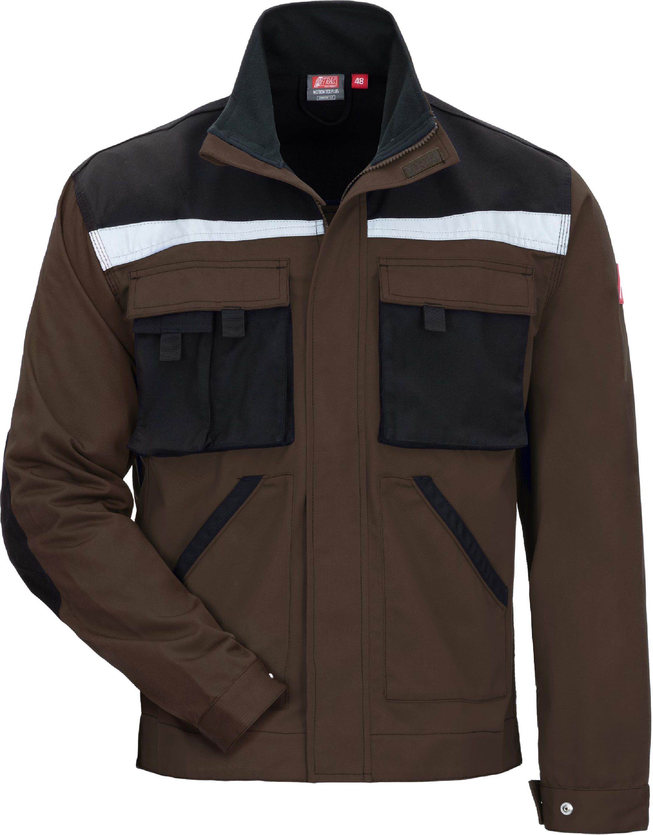 Bluza robocza Nitras Motion Tex Plus 7657 w kolorze brązowo/czarnym, zapinana na zamek błyskawiczny. Wykonana z wysokiej jakości materiałów, zapewnia trwałość i wysoki komfort pracy przez cały dzień. Ochraniacz na wysokości brody oraz elastyczne mankiety z regulacją na guziki gwarantują wygodę i idealne dopasowanie do potrzeb użytkownika. Dwie pojemne kieszenie na klatce piersiowej zapinane na rzep z klapką, kieszeń na telefon, kieszeń wewnętrzna oraz dwie kieszenie na długopisy zapewniają niezbędną przestrzeń na narzędzia i akcesoria. Wzmocnienia na łokciach i tyle bluzy dodają trwałości, a elementy odblaskowe poprawiają widoczność w warunkach o ograniczonej widoczności. Wydłużony tył kurtki gwarantuje dodatkową ochronę przed wiatrem i zimnem. Cechy i zalety produktu: Zapinana na zamek błyskawiczny Ochraniacz na wysokości brody Elastyczne mankiety z regulacją na guziki Duża ilość kieszeni Wzmocnienia na łokciach i tyle bluzy Wydłużony tył Elementy odblaskowe Materiał: 65% Poliester, 35% Bawełna Podszewka: 100% Poliester Dostępne rozmiary: 42 – 68 Opakowanie zbiorcze: 10 sztuk w kartonie Normy i certyfikaty: Oeko-Tex Standard 100