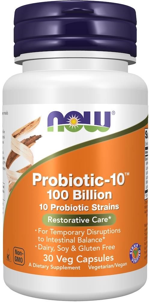 Now Foods Probiotic-10 50 Bilion Kapsułki, 50 szt.• 10 szczepów/ 50 mld jednostek bakterii probiotycznych w kapsułce• Nie zawiera mleka, soi ani glutenu• Potwierdzone klinicznie szczepy bakteriiProbiotic-10™ marki NOW® zapewnia zrównoważone spektrum organizmów żywych, probiotycznych szczepów bakterii odpornych na działanie kwasów, naturalnie zasiedlających przewód pokarmowy człowieka.Produkt dostarcza 50 miliardów jednostek tworzących kolonię (CFU), do terminu wskazanego w dacie przyd