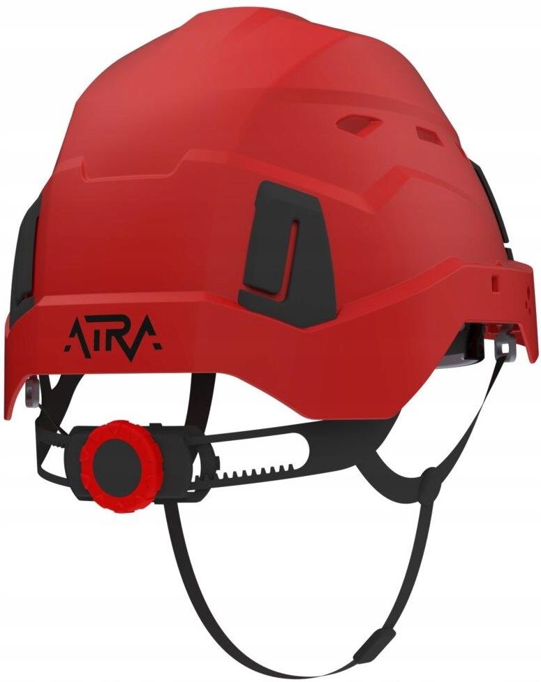 Kask przemysłowy Protekt – ATRA 40V czerwony Hełm przemysłowy Protekt ATRA 40V to nowoczesny, w pełni funkcjonalny kask do pracy na wysokości, spełniający normę EN 397. Kask przemysłowy – Protekt ATRA 40V czerwony– najważniejsze cechy: waga: 520 g kolor: czerwony zakres regulacji: 51 – 63 cm materiał skorupy: ABS czteropunktowy pasek podbródkowy paski nośne więźby (mocowane do skorupy hełmu w 6 punktach) łatwa regulacja pokrętłem temperatura pracy: – 30°C do +50°C gniazda na ochronniki słuchu Okres użytkowania 5 lat (max. 10 lat od daty produkcji) certyfikacja EN 397 Nowoczesny kask przemysłowy Protekt ATRA 40V czerwony to nowość łódzkiego producenta. Kask przeznaczony jest do pracy na wysokości, ma pasek podbródkowy instalowany w czterech punktach. Certyfikowany jest zgodnie z normą EN 397. Bez wątpienia godny polecenia, szczególnie do prac budowlanych i montażowych. Praca na budowie, a szczególnie na wysokości, wymaga stosowania ochrony głowy. Nowoczesny kask zapewnia możliwość instalacji dodatkowych akcesoriów, co wpływa na komfort i bezpieczeństwo pracy. Kask jest przystosowany do montażu ochronników słuchu oraz okularów ochronnych, które można w razie konieczności wymienić na przyłbicę chroniącą całą twarz. W przypadku wycinki drzew można zastosować siatkę zgodną z normą EN 1731. Hełm ATRA można doposażyć na przykład w osłonę przeciwsłoneczną lub czapkę zimową. Skorupa wykonana jest z materiału ABS i posiada uchwyty umożliwiające montaż latarki czołowej na gumowym pasku. Dlaczego warto zainwestować w kask przemysłowy Protekt ATRA 40V? Pierwszy powód to, sześciopunktowe mocowanie więźby do skorupy hełmu które zwiększa jego stabilność. Po drugie, możliwość regulacji rozmiaru obwodu kasku za pomocą kółka regulacyjnego umożliwia łatwe dopasowanie. Trzeci, powód to obrotowa więźba, którą można schować wewnątrz skorupy na czas transportu, jest niezwykle praktyczna. Po czwarte, kask spełnia dodatkowe wymagania normy, takie jak ochrona w niskiej temperaturze, odporność na odbryzgi gorącego metalu oraz na uderzenia.