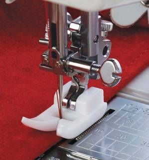 604 - Stopka teflonowa 200329004 Stopka doskonała do szycia skaju, skóry, winyl, lateks, tkanin banerowych i innych trudnych, syntetycznych, "klejących" się materiałów. W odróżnieniu od metalowych stopek materiały nie kleją się do niej podczas szycia. Powierzchnia stopki umożliwia uzyskanie …