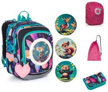 Zestaw do szko艂y sk艂adaj膮cy si臋 z plecaka, pi贸rnika, worka i pelerynki na plecak Komplet szkolny sk艂ada si臋 z produkt贸w: ENDY 24005 - Lekki plecak w le艣ne zwierz膮tka, PENN 24005 - Pi贸rnik szkolny z dwoma skrzyd艂ami, ZUZA 19045 - Worek na obuwie, ZIGI 17002 - Peleryna na plecak