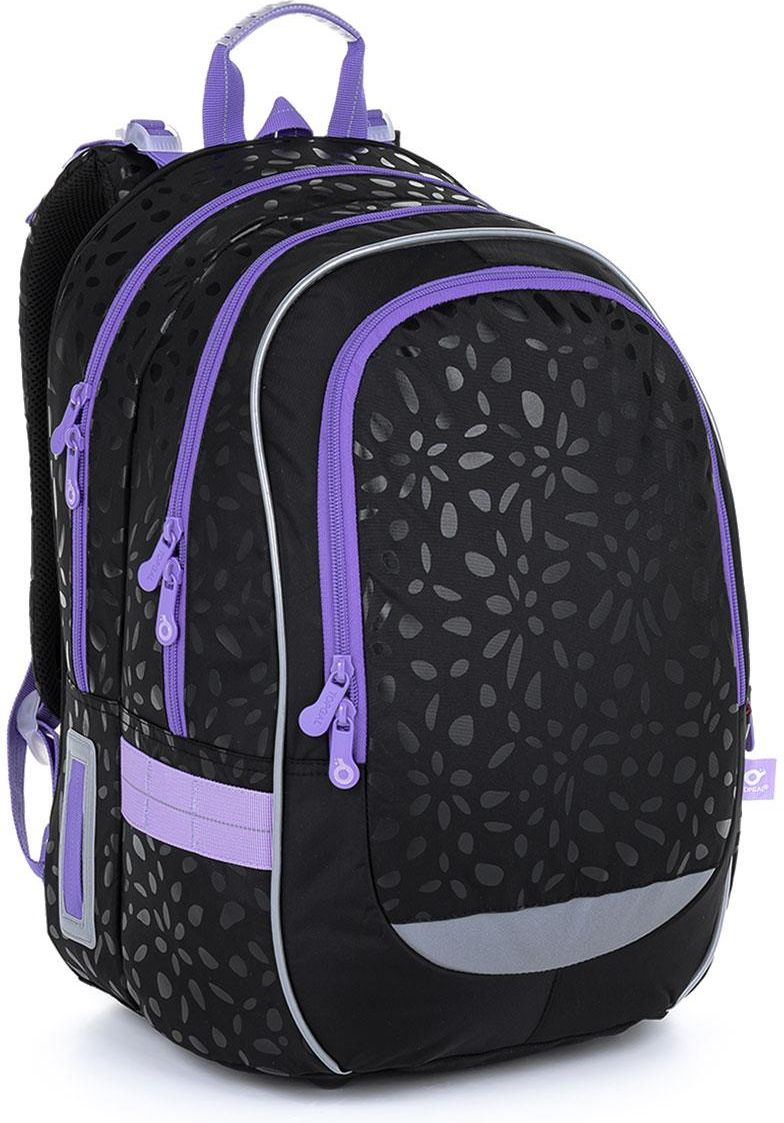 Lekki czarny plecak Topgal CODA 23007 Cechy główne pojemny krój - dwie komory, głęboka kieszeń z przodu, kieszeń z boku na napój sztywne plecy z lekkim stelażem, który można wyjąć odpowiedni nawet na wąskie, drobne plecy dziecka szerokie szelki z podwójną regulacją pas piersiowy na szelkach, regulowany końcowki pasków szelek z magnesami w celu estetycznego upięcia uchwyt do przenoszenia plecaka w ręce i drugi - do powieszenia plecaka, plecak nie stoi samodzielnie dno z grubego materiału TOPDURA plastikowe nóżki chroniące dno i impregnacja woodporna dna membrana przeciwdeszczowa - materiał plecaka nie przemoknie karabińczyk na klucze plecak przeszedł test w laboratorium ITC Zlin na szósteczkę! Dwukomorowy plecak CODA polecamy od 130 cm wzrostu. Dzięki dużej pojemności zmieści książki nawet do 5 klasy (w zależności od wymagań szkoły). Czarny kolor plecaka jest ozdobiony błyszczącym motywem i fioletowymi zamkami. Plecak ma dwie główne komory. Tylna komora jest przeznaczona do przenoszenia ciężkich książek, teczek, segregatorów, aby odciążyć plecy i równomiernie rozłożyć wagę plecaka. Przednia komora ma w środku kieszeń z siateczki zapinaną na zamek i identyfikator. Z przodu plecaka znajduje się głęboka kieszeń- można w niej przenosić np. śniadaniówkę, piórnik PENN 23007 w takim samym designie (nie są wyposażeniem). Znajduje się tu także karabińczyk na klucze, żeby zawsze były łatwo dostępne. Plecy plecaka są anatomicznie uformowane. Szelki w plecaku można wyregulować na górze i na dole dopasowując odległość plecaka i jego umiejscowienie na plecach dziecka. Pas piersiowy znajdujący się na szelkach dodatkowo je zepnie, nie będą zsuwały się z wąskich ramion dziecka. Porada Wewnątrz plecaka znajduje się stelaż aluminiowy w specjalnej kieszeni. Możesz go wyjąć, ale raczej tego nie polecamy - stelaż dba o anatomiczny kształt pleców, ich sztywność, a waży jedyne 0,06 kg!
