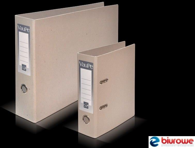 Segregator VAUPE TJ​. Segregator wykonany z twardej 2 mm tektury jasnej, niepowlekany, szerokość grzbietu 50, 75 lub 80 mm, mechanizm dźwigniowy z dociskiem, metalowe oczko grzbietowe, metalowe okucia owalne na przedniej okładce, samoprzylepna etykieta do opisu. Vaupe VauPe to wiodący producent kompleksowych rozwiązań w zakresie archiwizacji dokumentów. Firma VauPe specjalizuje się w produkcji segregatorów, pojemników i pudeł archiwizacyjnych, teczek biurowych do przenoszenia i przechowywania dokumentów oraz reklamowych teczek firmowych i segregatorów reklamowych z indywidualnym nadrukiem.