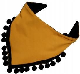 Chusta musztardowo-czarna z pomponikami Prószków