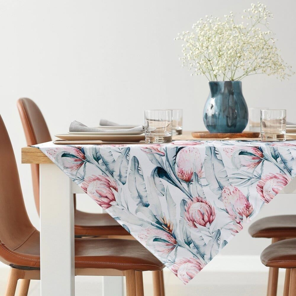 Eurofirany Obrus Dekoracyjny Wodoodporny Garden 85X85 Biały W Różowe Kwiaty Prószków