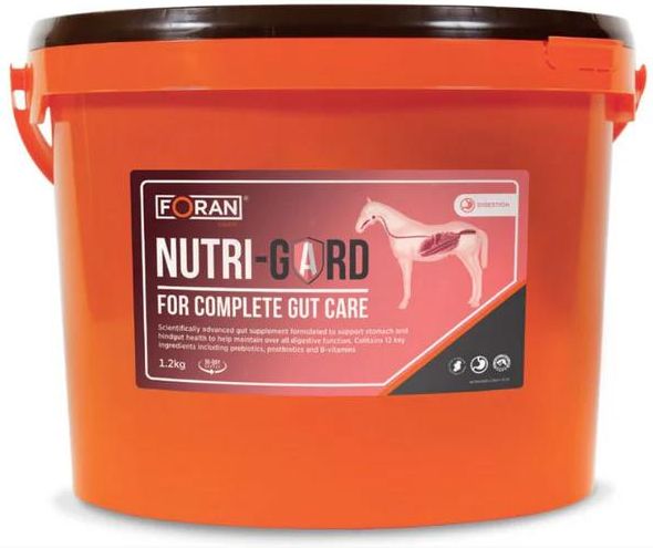 Foran Nutri-Gard Extra to suplement wspierający zdrowie żołądka dzięki zawartym prebiotykom, wysokostrawnym błonnikom i pobudzającym apetyt witaminom z grupy B. Specjalnie opracowany, aby wspierać układ trawienny. Zawiera hydrolizowane białko, prebiotyki i witaminy z grupy B, aby pomóc utrzymać kondycję i zoptymalizować metabolizm. Foran Nutri-Gard Extra to suplement idealny dla Koni podatnych na wrzody żołądka Koni narażonych na kwasicę jelit Koni wymagających dodatkowego wsparcia trawiennego Koni w stresie z obniżoną odpornością Koni na diecie o wysokiej zawartości paszy treściwej i niskiej zawartości paszy objętościowej, w celu odbudowania prawidłowej flory bakteryjnej w jelitach Koni chudych, w złej kondycji ciała Koni ze zmniejszonym apetytem Koni podróżujących lub regularnie startujące w zawodach Stabilizacji mikroflory w okresach zmian diety, takich jak okres pierwszego wiosennego wypasu Cechy i zalety Postbiotyk- wspomaga zdrowie jelit i układ odpornościowy Prebiotyki – wspierają zdrowy mikrobiom jelita grubego Witaminy z grupy B – niezbędne w diecie konia, wspierają apetyt, jak również optymalizują wykorzystanie paszy Pektyna- pomaga buforować kwas żołądkowy L-Treonina – niezbędna do produkcji mucyny, która wyściela i chroni przewód pokarmowy DL-Metionina – wspomaga aktywność enzymów jelitowych Błonnik owsiany – wspiera zdrowie żołądka, naturalnie bogaty w beta-glukany Smak jabłkowy – smaczny suplement, zachęca do spożycia Ścisła formuła antydopingowa (S.A.F.E) oznacza, że Foran Nutri-Gard Extra nie zawiera substancji zabronionych, dlatego jest bezpieczny do stosowania u koni sportowych biorących udział w zawodach. Skład: błonnik owsiany, produkty drożdżowe (postbiotyk), inulina, pektyna Witaminy w 1 Kg w 40 g 3a890 Chlorek choliny 10 000 mg 400 mg 3a820 Witamina B1 1 715 mg 69 mg 3a831 Witamina B6 785 mg 31 mg 3a825ii Witamina B2 620 mg 25 mg 3a316 Kwas foliowy 2 650 mg 105 mg Witamina B12 5,1 mg 200 µg Aminokwasy w 1 Kg w 40 g 3c410 L-Treonina 81 100 mg 3 240 mg 3c301 DL-Metionina 32 800 mg 1 310 mg Analiza składu Białko surowe 15,7% Włókno surowe 10,4% Tłuszcz surowy 0,8% Popiół 7,1% Płyny 8,8% Sód 0,4% Dawkowanie: Suplement należy mieszać z paszą. Dołączona miarka posiada pojemność około 20g. Z uwagi na fakt, że mikrobiom potrzebuje dłuższego czasu, aby dostosować się do zmian w dotychczasowej diecie konia, zalecamy podawanie Foran Nutri-Gard Extra przez okres 6-8 tygodni. masa ciała duże obciążenie stresem/treningami zapobiegawczo konie i kuce > 300kg 40g (ok. 2 miarki) 20g (ok. 1 miarka) konie i kuce < 300kg 20g (ok. 1 miarka) 10g (ok. 1/2 miarki)