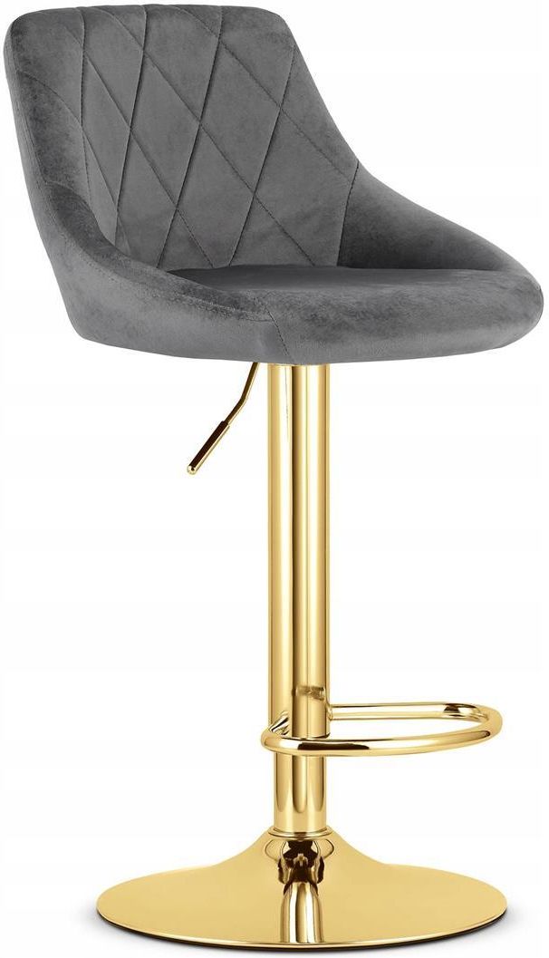 Hoker KAST - aksamit szary / baza złota Hoker obrotowy KAST: ponadczasowy design połączony z doskonałą ergonomią (chromowane elementy, które wpasują się w niejedno pomieszczenie) model krzesła obrotowego KAST doskonale pasuje do kuchni funkcjonalność, prosta forma, wytrzymałość, możliwość regulacji …