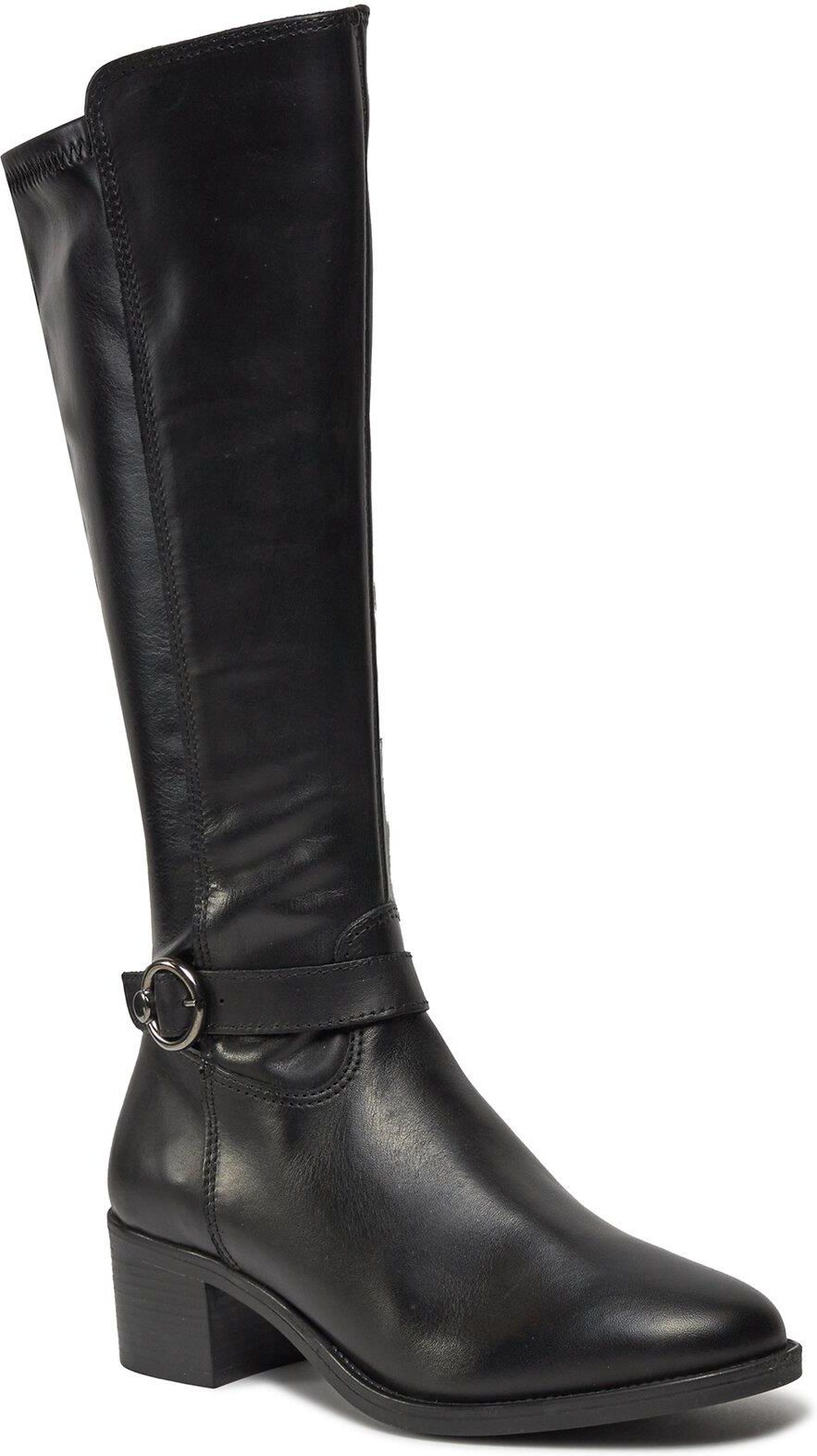 TAMARIS 1-25537-41 001 black, kozaki damskie Kod produktu: 19265 Bezpieczeństwo: CE Parametry Cechy specjalne: Buty ocieplone Zapięcie: Zamek Kolor dominujący: Czarny Cholewka: Skóra naturalna Materiał cholewki: Skóra naturalna/skóra ekologiczna Materiał podszewki: Tkanina Wkładka: Ocieplenie …