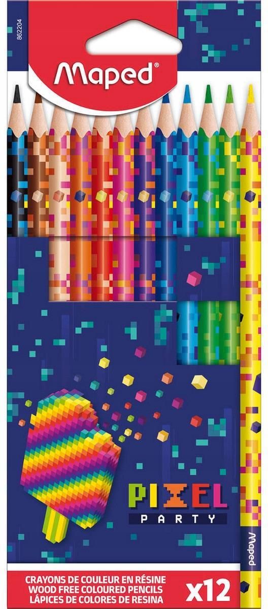 Zestaw kredek ołówkowych Pixel - Maped - 12 kolorów Kredki ołówkowe z kolekcji Pixel w 12 kolorach to idealne narzędzie do tworzenia sztuki dla dzieci i dorosłych. Ich trójkątny, ergonomiczny przekrój zapewnia wygodne trzymanie, co sprawia, że rysowanie staje się przyjemnością. Te kredki charakteryzują się intensywnymi kolorami, które doskonale się mieszają i nadają wyrazistość każdemu dziełu. Grafit, z którego zostały wykonane, jest odporny na kruszenie i łamanie, co gwarantuje długotrwałe użytkowanie. Dodatkowym atutem jest łatwość w temperowaniu, dzięki czemu zawsze są gotowe do użycia. Ich korpus ozdobiony jest grafiką, składającą się z różnokolorowych kwadracików, tworzącą niepowtarzalne wzory, które inspirują do kreatywności. Niezwykle ważne jest także to, że kredki te zostały wyprodukowane zgodnie ze wszystkimi regulacjami dotyczącymi produktów dla dzieci, co oznacza, że są bezpieczne w użytkowaniu przez najmłodszych artystów. Dzięki nim każde dziecko może rozwijać swoje talenty artystyczne w bezpieczny i kolorowy sposób. OPAKOWANIE: 12 szt.