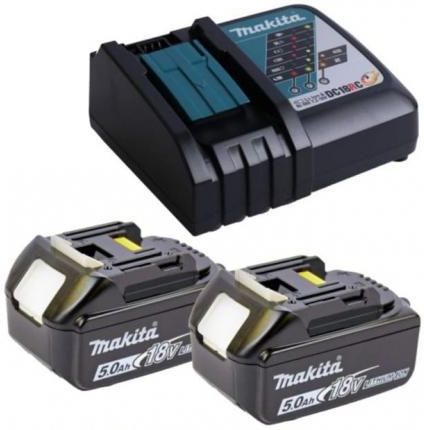 Makita Ładowarka DC18RC + akumulator 2 x BL1850B Charakterystyka produktu: Akumulator Makita BL1850B jest lekki i odporny na upadki Akumulatory Li-ion zapewniają o 430% większą wydajność pracy podczas używania w porównaniu z Ni-Cad i są o 40% lżejsze niż Ni-MH. Akumulator Li-ion ma minimalny ubytek energii podczas użytkowania lub przechowywania. Przybliżony czas ładowania to 36 minut Współpracuje z tymi samymi ładowarkami co akumulatory 3.0Ah i 4.0Ah Dłuższy czas pracy i żywotność baterii Posiada wskaźnik naładowania Makita DC18RC Specyfikacja techniczna Kontrola napięcia i temperatury by zmaksymalizować żywotność baterii Główny procesor ładowarki: analizuje dane z pamięci baterii Aktywny system chłodzenia Dzięki wbudowanemu wentylatorowi schładza baterię podczas ładowania Szybkie ładowanie: ładowanie baterii 18V 5.0Ah Li-Ion następuje po około 36 minutach Typ baterii: Lithium Ion/LI-Ion Pojemności baterii: 1.3 - 5 Ah (BL1815, BL1815N, BL1820, BL1830, BL1840, BL1840B, BL1850, BL1850B, BL1860, BL1860B) Zestaw zawiera: Ładowarkę Makita DC18RC 2x akumulator litowo-jonowy 18V 5Ah Makita BL1850B
