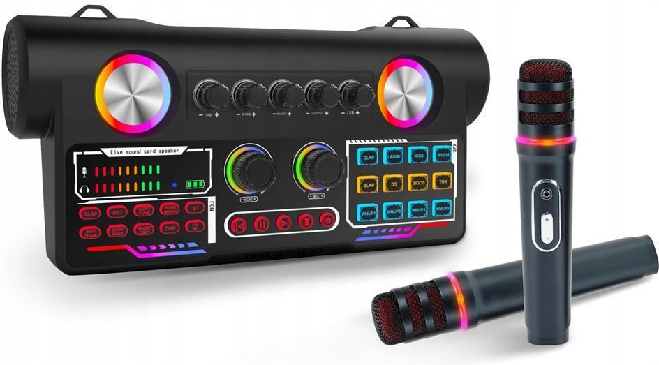 Zestaw do Karaoke i Streamingu Bluetooth MM-SC450 MusicParty + 2 Mikrofony Twoje show, Twój dźwięk, Twoja zabawa! MM-SC450 MusicParty to zaawansowany, wielofunkcyjny zestaw audio, który sprawi, że każda transmisja na żywo, karaoke czy podcast nabierze profesjonalnego charakteru. Dzięki innowacyjnym funkcjom, takim jak 25 efektów i filtrów dźwiękowych w czasie rzeczywistym, wbudowanym głośnikom, bezprzewodowym mikrofonom oraz kolorowemu podświetleniu, MM-SC450 to narzędzie, które zaspokoi oczekiwania każdego streamera, DJ-a, vlogera czy miłośnika karaoke. Specyfikacja techniczna Bluetooth: Tak Kolor obudowy: Czarny Moc znamionowa RMS: 16 W Obsługiwane formaty: MP3 Podbicie basu: Tak Zasilanie: Wbudowana bateria 4000mAh (do 10 godzin pracy) Wymiary: 32 x 16 x 8 cm Waga: 1 kg Złącza: AUX (Jack 3.5 mm), USB, 2 wejścia mikrofonowe przewodowe (Jack 3.5 mm), Wyjście słuchawkowe (Jack 3.5 mm), OTG/USB-C Wyposażenie: 2 mikrofony bezprzewodowe, kabel USB, kabel AUX, bezprzewodowy adapter mikrofonowy, pasek na ramię Załączona dokumentacja: Instrukcja obsługi w języku polskim, Karta gwarancyjna Zestaw MM-SC450 MusicParty zawiera 2 mikrofony bezprzewodowe Kabel USB Kabel AUX Bezprzewodowy adapter mikrofonowy Pasek na ramię Instrukcja obsługi w języku polskim Karta gwarancyjna Kluczowe cechy 25 efektów i filtrów dźwięku – Oferuje szeroką gamę dźwiękowych filtrów i efektów, które możesz dostosować na żywo, idealne do karaoke, transmisji live, nagrań podcastów i innych wydarzeń. Efekty dźwiękowe w czasie rzeczywistym (LIVE) – Zmieniaj brzmienie na bieżąco, bez opóźnień, aby w pełni kontrolować atmosferę każdego występu. 2 bezprzewodowe mikrofony – Doskonała jakość dźwięku i swoboda ruchu podczas karaoke, transmisji na żywo czy nagrań, bez konieczności podłączania kabli. Wbudowana bateria 4000mAh – Do 10 godzin pracy na jednym ładowaniu, dzięki czemu możesz prowadzić transmisje czy organizować długie sesje karaoke bez obawy o wyczerpanie baterii. Bluetooth i złącza do podłączeń przewodowych – Łatwo podłączysz urządzenia przez Bluetooth, a także masz możliwość podłączenia mikrofonów przewodowych oraz innych urządzeń za pomocą AUX, USB czy OTG/USB-C. Wbudowane głośniki – Głośniki o mocy 16W zapewniają świetną jakość dźwięku, idealną do karaoke, transmisji live oraz innych zastosowań audio. Kolorowe podświetlenie RGB – Efekty świetlne przycisków i głośników, które dodają energii i profesjonalnego wyglądu każdemu wydarzeniu. Uniwersalne zastosowanie – Zestaw MM-SC450 sprawdzi się nie tylko podczas imprez karaoke, ale także w streamingu, podcastingu, transmisjach live oraz vlogowaniu. Zastosowanie Karaoke: Idealne do domowych imprez, spotkań z przyjaciółmi, gdzie wspólne śpiewanie nabiera nowego wymiaru. Streaming i Transmisje LIVE: Dzięki funkcji LIVE oraz Bluetooth, MM-SC450 to doskonałe narzędzie do transmisji na żywo, z niezawodną jakością dźwięku. Nagrywanie i Podcasting: Wbudowane mikrofony bezprzewodowe oraz możliwość podłączenia dodatkowych mikrofonów sprawiają, że MM-SC450 to świetny wybór dla podcasterów i twórców internetowych. VLOG i streaming muzyczny: Doskonałe do tworzenia profesjonalnych materiałów wideo z jakością dźwięku na poziomie studia. Dodatkowe funkcje Łączność bezprzewodowa Bluetooth – Proste połączenie z urządzeniami mobilnymi, laptopami i tabletami. 2 wejścia mikrofonowe przewodowe – Możliwość podłączenia dodatkowych mikrofonów dla większej liczby uczestników. Wejścia live – Do łatwego podłączenia urządzeń do transmisji na żywo. Wyjście słuchawkowe i OTG/USB-C – Odbieraj dźwięk bezpośrednio przez słuchawki lub podłącz urządzenia przez port USB-C. MM-SC450 MusicParty to zestaw, który pozwoli Ci tworzyć niezapomniane wrażenia dźwiękowe na każdym wydarzeniu. Niezależnie od tego, czy nagrywasz podcasty, organizujesz transmisję na żywo, czy po prostu bawisz się z przyjaciółmi podczas karaoke – MM-SC450 będzie Twoim niezawodnym partnerem w każdej sytuacji!