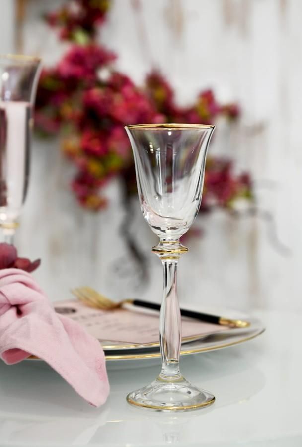 Bardzo elegancki komplet kieliszków do likieru Pojemność 60ml h-171mm, śr-56mm Kieliszki wyprodukowane w Czechach Wyzdobione w naszym zakładzie w Opolu. Paski złote pomaowane pędzlem, 24 karatowym złotem Wyrob nie nadaje sie do mycia w zmywarce. Cena za 6szt.