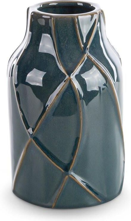 Zielony wazon TEO o fantazyjnym kształcie i powierzchni z efektownym nowoczesnym wypukłym wzorem to efektowny dodatek do każdego wnętrza.Wazon to niezwykle stylowy element dekoracji wnętrza. Sprawdzi się jako tradycyjnie rozumiany pojemnik na kwiaty świeże, suszone bądź sztuczne, ale również jako samodzielny element dekoracji wnętrza. Wazon podkreśli urodę twoich kwiatów i przedłuży żywotność tych świeżych. Sprawi, ze będziesz się cieszyć nimi podwójnie - ich uroda zostanie podkreślona piękną oprawą w postaci wazonu. Wazon podkreśli też indywidualny charakter wystroju pomieszczenia. Dobrany kolorystycznie do innych elementów sprawi, że całość nabierze spójnego charakteru. Wazon to również świetny pomysł na prezent z różnych okazji: imienin, parapetówki, rocznicy ślubu etc. Kolor: turkusowy Skład: glinka ceramiczna Rozmiar: 14 (fi) x 22 cm