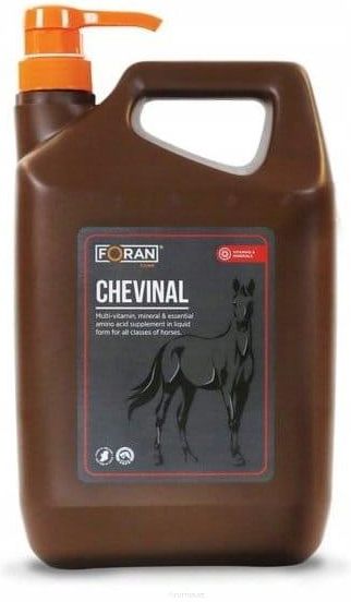 Witaminy dla koni Foran Chevinal to smaczny suplement w płynie zawierający niezbędne aminokwasy, minerały i witaminy dla koni, w celu codziennego uzupełnienia diety. Witaminy dla koni Foran Chewinal to suplement idealny dla Koni sportowych, których dieta nie pokrywa zapotrzebowania na mikroelementy Koni przygotowywanych do sprzedaży Koni pokazowych Klaczy Ogierów Rasy rodzime podatne na otyłość Cechy i zalety Stworzony przez zespół naukowców, w celu zoptymalizowania diety konia Smaczny syrop do codziennego stosowania, aby uzupełnić dietę konia o niezbędne składniki Wspomaga utrzymanie odpowiedniej kondycji konia, ponieważ zawiera łatwoprzyswajalne niezbędne aminokwasy Odpowiedni dla koni na diecie z kontrolowaną ilością kalorii, jako podstawowe źródło witamin, minerałów i aminokwasów Certyfikat S.A.F.E (The Strict Anti-Doping Formulated) oznacza, że witaminy dla koni Foran Chevinal nie zawierają zabronionych substancji, dlatego są bezpieczne do stosowania u koni startujących w zawodach i wyścigach. Foran Chevinal dostępny jest w pojemnościach 1L, 2,5L i 5L. Skład: melasa trzcinowa, sorbitol, chlorek sodu, miód, magnez, siedmiowodny siarczan, ekstrakt drożdżowy (inaktywowany) Witaminy w 1 litrze w 60ml 3a672a Witamina A 600000 I.U. 36000 I.U. E671 Witamina D 107000 I.U. 5400 I.U. 3a700 Witamina E 17000 mg 1020 mg 3a710 Witamina K3 100 mg 6 mg 3a820 Witamina B1 1225 mg 60 mg 3a825ii Witamina B2 425 mg 24 mg 3a831 Witamina B6 490 mg 24 mg Witamina B12 1600 g 26 mg 3a841 D-pantotenian wapnia 2000 mg 120 mg 3a880 Biotyna 20 mg 1.2 mg 3a890 Chlorek choliny 4000 mg 240 mg 3a314 Niacyna 1200 mg 72 mg Pierwiastki śladowe w 1 litrze w 60ml 3b104 Żelazo 1600 mg 96 mg 3b201 Jod 20 mg 1,2 mg 3b405 Miedź 1400 mg 84 mg 3b503 Mangan 4000 mg 240 mg 3b603 Cynk 5000 mg 300 mg 3b810 Selen 7 mg 0,42 mg Aminokwasy w 1 litrze w 60ml 3.2.3 Monochlorowodorek L-lizyny 10000 mg 600 mg 3c301 DL-Metionina 8000 mg 480 mg Konserwanty w 1 litrze w 60ml 1k202 Sorbinian potasu 2000 mg 120 mg Analiza składu: Białko surowe 4.6% Włókno surowe 0.4% Tłuszcz surowy 1.6% Popiół 12.1% Płyny 55.9% Sód 1.3% Wapń 0.3% Dawkowanie: Witaminy dla koni Foran Chevinal należy codziennie mieszać z paszą, aby dostarczać niezbędne składniki odżywcze do diety konia. Zawiera 30 ml pompkę lub nakrętkę w celu ułatwienia aplikacji. Wstrząsnąć przed użyciem. masa ciała dzienna dawka w ml, dawkowanie 2- 4 tygodnie dzienna dawka w ml, dawkowanie powyżej 4 tygodni konie i kuce > 300kg 60 ml 30 ml konie i kuce < 300kg 30 ml 15 ml Foran Chevinal Foran Equine to marka słynąca z produkcji wysokiej jakości suplementów diety dla koni. ChevinalPlus jest jednym z jej wielu produktów cieszących się popularnością nie tylko wśród właścicieli pojedynczych wierzchowców, ale też całych stad (np. zwierząt w stadninach sportowych czy szkółkach jeździeckich). Ten multiwitaminowy syrop przeznaczony do mieszania z paszą może być spożywany przez ogiery, wałachy i klacze (w tym także źrebne). Nadaje się do codziennego stosowania również w przypadku koni startujących w zawodach lub wyścigach, gdyż nie zawiera żadnych zabronionych substancji, a dodatkowo pomaga w utrzymaniu prawidłowej masy ciała. Znany jest też pod skróconą wersją nazwy, czyli jako Chevinal. Wszystkie niezbędne witaminy w jednym suplemencie diety: Chevinal Witaminy są niezbędne zarówno w diecie ludzi, jak i różnych zwierząt. Konie nie stanowią tu wyjątku. Te udomowione ssaki nieparzystokopytne, by zachować optymalny stan zdrowia, a także móc osiągać zadowalające wyniki w treningu lub sportowych zmaganiach potrzebują różnorodnych składników odżywczych. U wierzchowców sportowych czy pokazowych (karmionych głównie sianem oraz owsem) mogą pojawić się niedobory. Na szczęście deficyty da się łatwo uzupełnić za pomocą suplementów diety takich jak Chevinal. W tym produkcie znajdują się przede wszystkim witaminy z grupy A, B, C, D, E, K — kluczowe dla prawidłowego funkcjonowania końskiego organizmu, a w przypadku młodszych rumaków konieczne do poprawnego rozwoju. Chevinal Plus — smaczny suplement odpowiedni nawet dla wybrednych koni Wierzchowce, podobnie jak ich jeźdźcy, mogą być bardzo wybredne, jeśli chodzi o żywność. Z tego powodu podczas wybierania suplementu diety dla własnego konia warto kierować się nie tylko tym, jakich mikroelementów on potrzebuje, ale też jego upodobaniami. Chevinal Plus, poza bogactwem cennych witamin i minerałów, zawiera również melasę trzcinową oraz miód. Te słodkie, w pełni bezpieczne dla zwierząt składniki poprawiają smak syropu, sprawiając, że jest on chętniej spożywany nawet przez zazwyczaj wybredne klacze czy ogiery. Dodatkowo odpowiadają one za półpłynną, a zarazem lepką konsystencję produktu, który dzięki temu łatwo miesza się z paszą. Koński suplement diety w większym lub mniejszym opakowaniu Klientami naszego sklepu internetowego są zarówno właściciele stadnin zarabiający na swoich zwierzętach, jak i osoby posiadające konie na własny, prywatny użytek. Z tego powodu zadbaliśmy o to, by dało się tu bez problemu zamówić suplementy w pojemnikach o różnych pojemnościach. Chevinal oferujemy w opakowaniach mających objętość: 1 l, 2,5 l, 5l, 10l. Dzięki możliwości wyboru wielkości kanistra każdy z Klientów może znaleźć odpowiednią dla siebie opcję. Chevinal Plus marki Foran Equine to produkt, który sprawdzi się zarówno u wierzchowców żyjących w wielkich stadninach, jak i niewielkich stajniach. Zachęcamy do wypróbowania tego wysokiej klasy suplementu diety dla koni — zamówienia go z naszego sklepu internetowego.