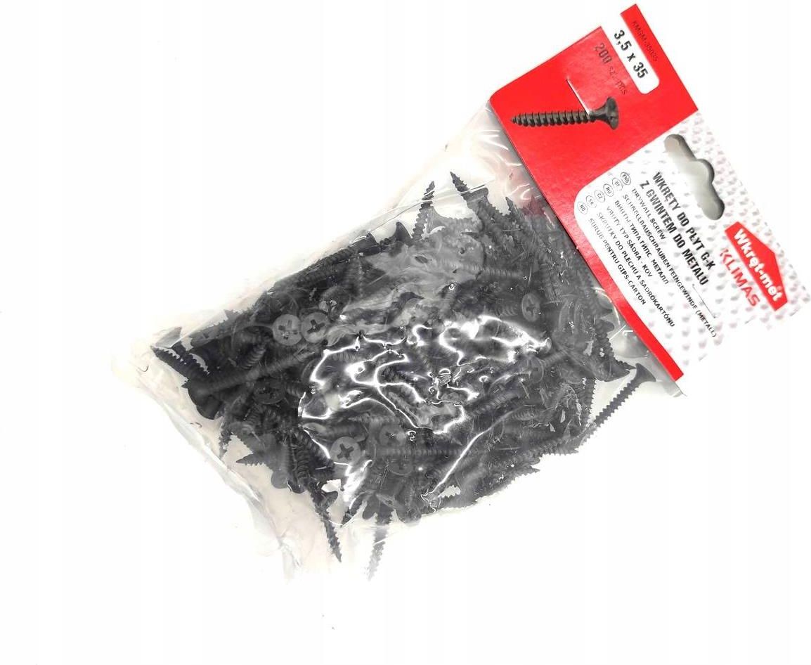 Wkręty do płyt kartonowo-gipsowych do metalu 3,5 x 35 (200szt) Mocowanie płyt G-K do podłoży stalowych wewnątrz budynków. Gniazdo PH2 - Jedno z najbardziej powszechnych gniazd, umozliwia montaż przy użyciu końcówek z ogranicznikiem Łeb stożkowy - Zapewnia odpowiednie zagłebienie wkręta wmocowanym …