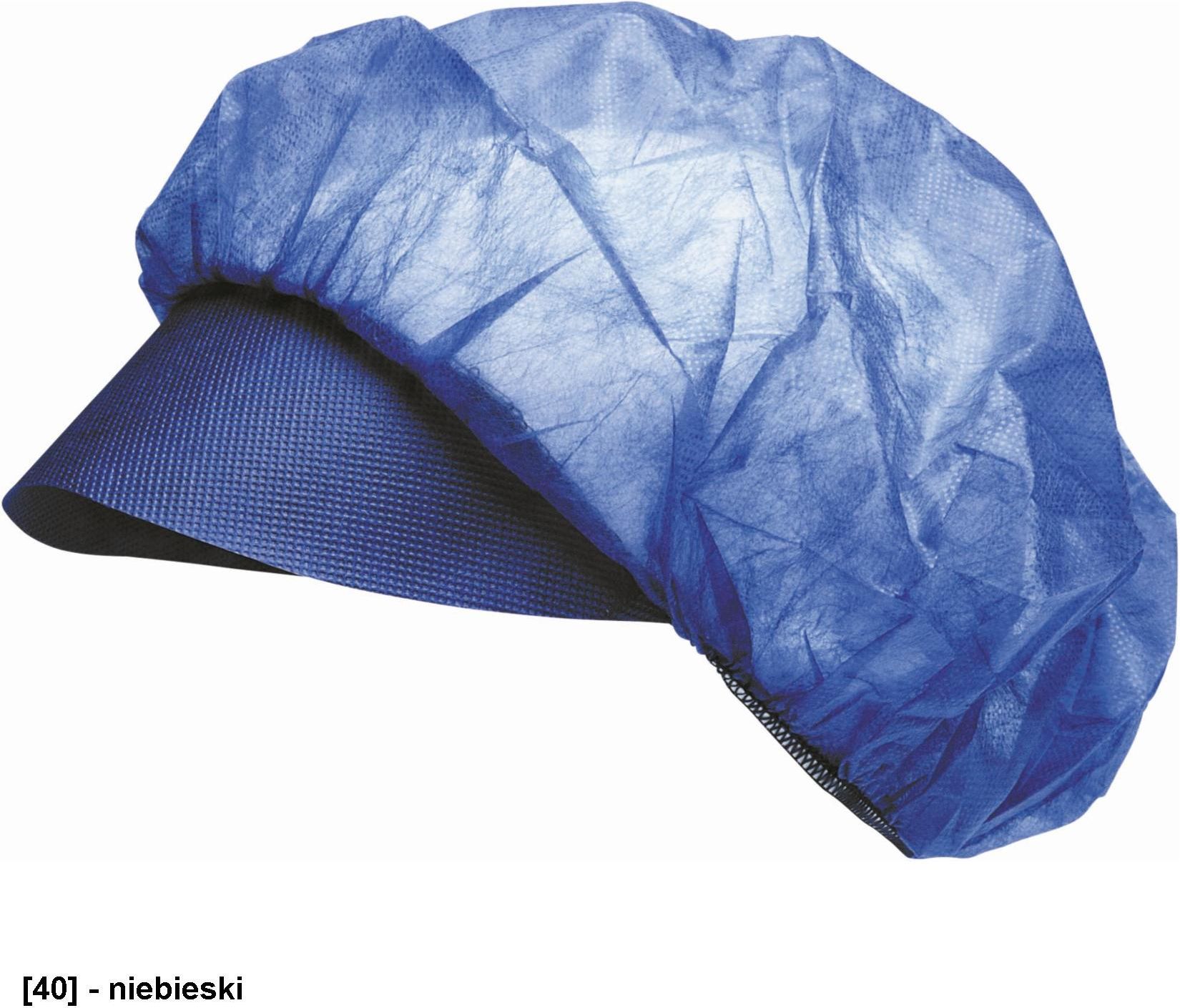 Materiał: materiał podszewki: 100 % polipropylen opis: jednorazowa czapka ochronna z daszkiem o masie 16 g. Cechy: jednorazowy