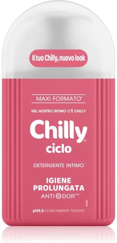 Chilly Ciclo, 300 ml, Żel do higieny intymnej dla kobiet, Preparat Chilly Ciclo zapewnia delikatną i łagodną codzienną pielęgnację intymnych partii ciała. Właściwości: łagodnie myje wrażliwe partie ciała uwzględnia pH skóry i przywraca jego naturalną wartość zapewnia długotrwałe uczucie świeżości …