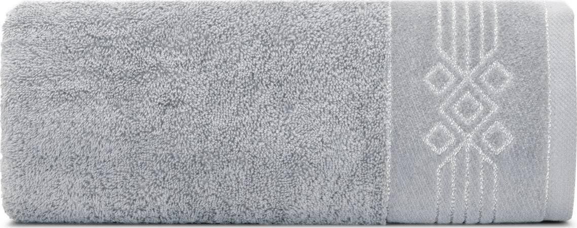 Szary ręcznik bawełna wzór geometryczny chłonny 50X90 Eurofirany Aukcja dotyczy sprzedaży jednej sztuki Dane techniczne: szerokość: 50 cm długość: 90 cm skład: 100% bawełna, część ozdobna: 80% bawełna, 20% poliester gramatura: 520 g/m2 Miękki i puszysty ręcznik KAMELA z wysokiej jakości bawełny …