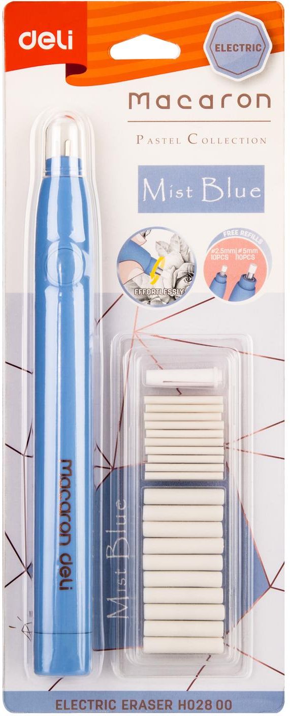 Elektryczna gumka marki DELI to precyzyjne i wygodne narzędzie idealne do szkiców, rysunków technicznych oraz codziennego użytku szkolnego i biurowego. Cechy produktu: Dwa rodzaje wkładów: 10 szt. o średnicy 5 mm do większych powierzchni 10 szt. o średnicy 2,5 mm do detali i precyzyjnego wymazywania Wygodna w użyciu działa automatycznie po naciśnięciu przycisku Nowoczesny design z serii Macaron kolory pastelowe: Mist Blue lub Mint Green (wysyłane losowo) Bezpieczna w użytkowaniu materiał PP (polipropylen), nietoksyczna, bez PVC Specyfikacja: Wymiary: 178 x17 x 18 mm Opakowanie: blister Zasilanie: 2 bateria AAA (brak w zestawie) W zestawie: urządzenie + 20 wkładów (10 x 5 mm + 10 x 2,5 mm)