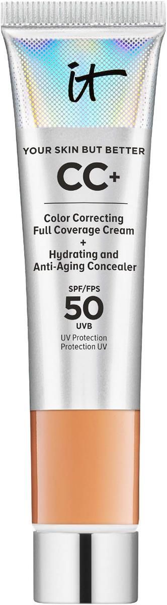 IT Cosmetics Your Skin But Better CC+ Cream with SPF 50+ To znany bestseller i ulubieniec wszystkich! Nawilżające serum przeciwzmarszczkowe, podkład zmniejszający pory i nawilżający krem na dzień - wszystko w jednym. Zalety: Zawiera kolagen, który wzmacnia i ujędrnia skórę Kwas hialuronowy, który zapewnia skórze długotrwałe nawilżenie oraz pomaga nadać jej sprężystość i gładkość. Zawiera witaminy A, B, C i E, dzięki czemu wkrótce stanie się obowiązkowym elementem Twojej rutyny makijażowej, gdy będziesz chciała uzyskać gładki i naturalnie wyglądający efekt, a jednocześnie sprawić, że pory, drobne zmarszczki i przebarwienia staną się mniej widoczne. Krem CC+ firmy IT Cosmetics został opracowany we współpracy z ekspertami w dziedzinie pielęgnacji skóry i dermatologami, a w jego składzie znajdują się delikatne składniki pielęgnujące skórę. Doskonałe krycie Przeciwstarzeniowy filtr SPF 50 Korekcja koloru Zmniejsza widoczność porów, drobnych linii i zmarszczek Serum, podkład i krem na dzień - wszystko w jednym. Sposób użycia: Krem CC+ nakładaj pędzlem do makijażu IT Cosmetics Heavenly Luxe Complexion Perfection #7, który ułatwia rozprowadzanie i rozcieranie 12 ml