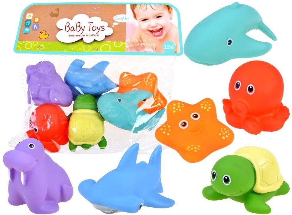 Zestaw gumowych zwierzątek morskich przyda się podczas tworzenia zabaw z charakterem morskim. Gumowe zabawki to zwierzątka, które żyją na co dzień w wodzie. Dzięki niewielkiemu gabarytowi dziecko będzie mogło mieć zabawkę zawsze przy sobie podczas podróży do przedszkola, piaskownicy na wycieczkę na plażę. Zestaw zawiera: - pomarańczowa rozgwiazda - niebieski rekin młot - miętowy wieloryb - zielony żółw z żółtą skorupą - czerwona ośmiornica - fioletowy mors Sześć uroczych zwierzaków przyda się podczas codziennych zabaw w kąpieli, na placu zabaw itp. Kolorowe zwierzątka zostały zapakowane w przeźroczyste opakowanie.