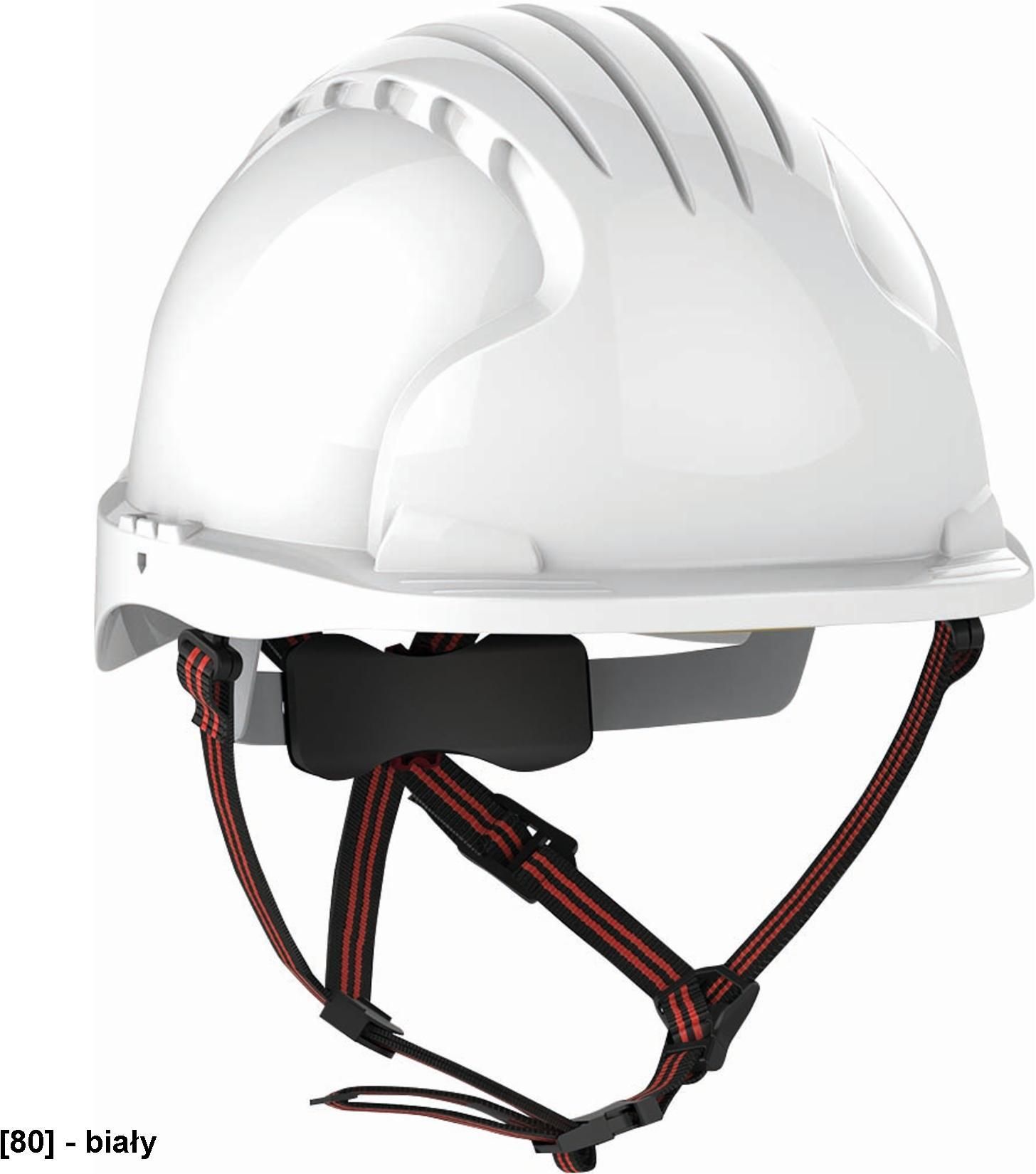 EVO5 DUALSWITCH™ materiał: ABS, waga: 480 g, wentylacja: tak, 6-punktowa, materiałowa więźba, regulacja: pokrętło, rozmiar: 53–64 cm, żywotność: 5 lat, temperatura: -40° C do +50° C, spełnia wymogi testów naodkształcenia boczne (LD), ochrona przed odpryskami metali (MM) Marka: JSP
