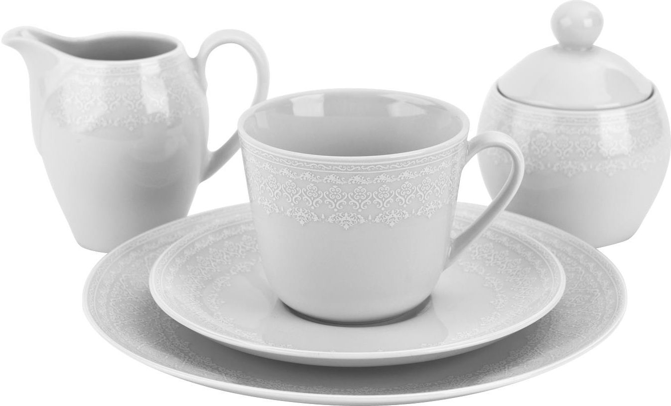 Serwis do kawy 6/20 Prowans Serwis kawowy Prowans dla 6 osób. Ekskluzywna kolekcja z pewnością spełni najśmielsze oczekiwania nawet najbardziej wymagających osób. Ozdobna koronka wokół każdego z naczyń dodaje subtelności i wdzięku zastawie. W skład serwisu wchodzi 6x talerz deserowy 21,5 cm 6x filiżanka 200ml 6X spodek 16,5 cm 1x cukiernica 150 ml, średnica 8,5 cm, wysokość 10,5 cm 1x mlecznik 180 ml Produkt można używać w zmywarce. Aby zachować dłuższą żywotność produktu i jego niezmienioną formę zaleca się: stosować jedynie delikatne środki myjące żele - stosować tylko programy do delikatnego mycia naczynia w zmywarce układać luźno, by ich stykanie się w trakcie mycia nie powodowało zarysowań rantów przed włożeniem do zmywarki nie stosować ostrych gąbek lub innych przedmiotów mogących spowodować zarysowania przy myciu ręcznym lub wstępnym nie stosować past lub proszków o właściwościach ściernych nie stosować środków żrących ani dezynfekujących Produkt można używać w zmywarce oraz w kuchenkach mikrofalowych. Waga (Kg): 5 nr katalogowy (298863)