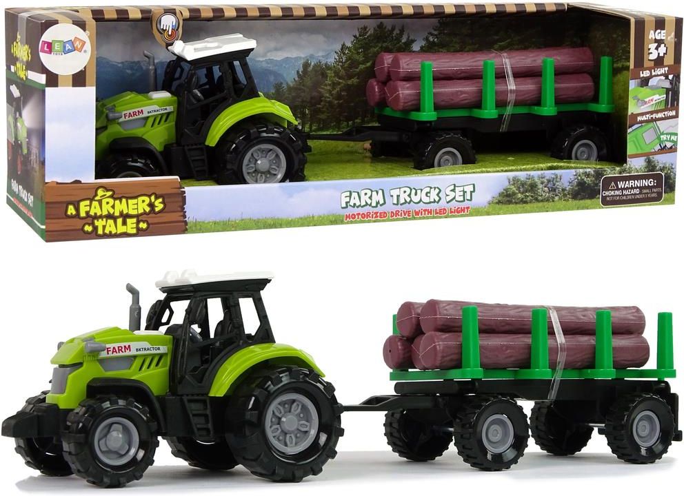 Leantoys Zielony Traktor Przyczepa Bale Drewna Farma Dźwięk Proszowice