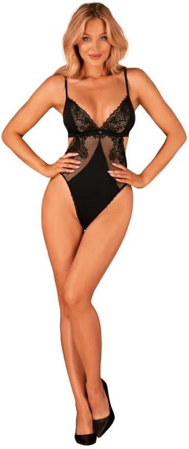 Zmysłowe body z domieszką elastycznej koronki oraz siateczki w kolorze czarnym Klasyczna czerń, kobieca linia i detale, które robią różnicę. To propozycja dla kobiet, które cenią zmysłową elegancję połączoną z komfortem noszenia. Subtelne połączenie koronki i półtransparentnej siateczki pięknie podkreśla sylwetkę, nie odsłaniając jej w oczywisty sposób. To body, które działa na wyobraźnię – spokojnie, ale skutecznie. Bielizna została zaprojektowana tak, aby modelować sylwetkę i akcentować jej naturalne atuty. Miękka koronka przy biuście przyciąga wzrok, a delikatna siateczka subtelnie otula ciało, tworząc efekt drugiej skóry. Klasyczna, głęboka czerń – ponadczasowa i niezwykle kobieca Koronkowe miseczki – podkreślają biust i dodają elegancji Półtransparentny materiał – lekki, zmysłowy i bardzo przyjemny w dotyku Regulowane ramiączka – pozwalają idealnie dopasować body do sylwetki Zapięcie w kroku i na plecach – wygodne i praktyczne rozwiązanie Body wykonane jest z elastycznego, wysokiej jakości materiału, który dopasowuje się do ciała i zapewnia swobodę ruchów. To bielizna, w której możesz czuć się pięknie i komfortowo — bez kompromisów. Dla kogo? Ten model body to idealny wybór dla kobiet, które: szukają zmysłowej, ale nienachalnej bielizny, cenią elegancję i klasyczne formy, chcą poczuć się pewnie, kobieco i wyjątkowo – dla siebie lub dla kogoś bliskiego. Minimalistyczne, zmysłowe i bardzo kobiece — to body, które zostaje w pamięci na długo.