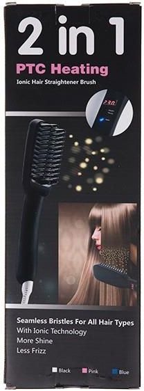 Charakterystyka szczotki prostującej do włosów Zaawansowana szczotka do włosów Medpak. Każdy ząb stanowi oddzielną grzałkę wykonaną w technologii PTC, pokryty ceramiczną powłoką w osłonie z tworzywa sztucznego. Zastosowanie grzałek PTC gwarantuje szybkie nagrzewanie oraz stabilną temperaturę pracy. Grzałki tego typu posiadają bardzo istotną zaletę, jaką jest samoregulacja temperatury. Nigdy więcej nie zniszczysz swoich włosów z powodu zbyt wysokiej temperatury. Powłoka ceramiczna dodatkowo stabilizuje temperaturę, a jej gładka powierzchnia nie szarpie włosow i nie powoduje uszkodzeń ich powierzchni. Osłona zęba wykonana z tworzywa sztucznego chroni delikatną skórę głowy przed poparzeniami. Informacje dodatkowe Typ: Szczotka z funkcją prostowania 2w1 Napięcie wejściowe: 100-240V Moc: 30W Technologia: Grzałki PTC Zasilanie jonizatora: 5V Moc jonizatora: <1w> Koncentracja anionów: ~6 milionów cząstek / cm^3 Temperatura pracy: 150 - 230°C