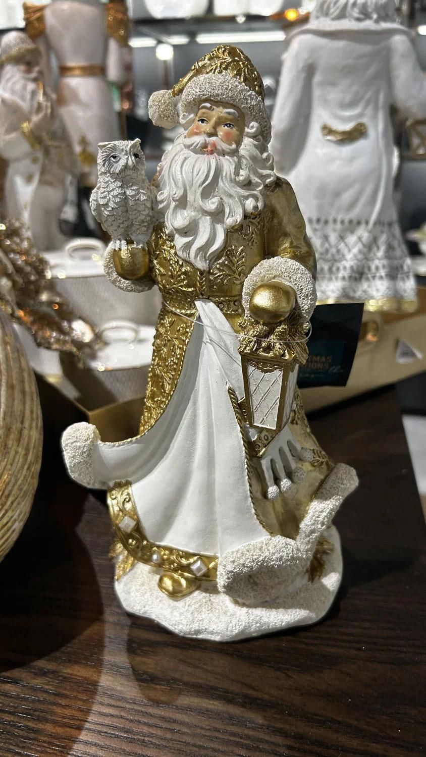 Świąteczna dekoracyjna figura przedstawiająca Świętego Mikołaja trzymającego sowę Merry Moments, - figura została wykonana z polirezyny - wytrzymałego materiału charakteryzującego się lekkością, dzięki czemu figura mimo dużych gabarytów nie jest ciężka, Wymiary 16 x 10 x 26cm (dł. x szer. x wys.)
