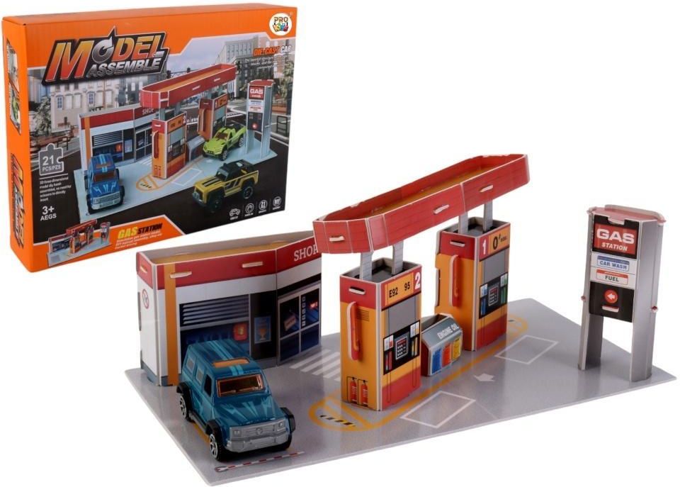 Zestaw Stacja benzynowa z autkami to doskonała zabawka dla małych miłośników motoryzacji i kreatywnej zabawy. Zawiera kolorową stację benzynową do samodzielnego złożenia oraz dwa metalowe samochodziki. Dzięki szczegółowym elementom, takim jak dystrybutory paliwa czy myjnia samochodowa, dziecko może …