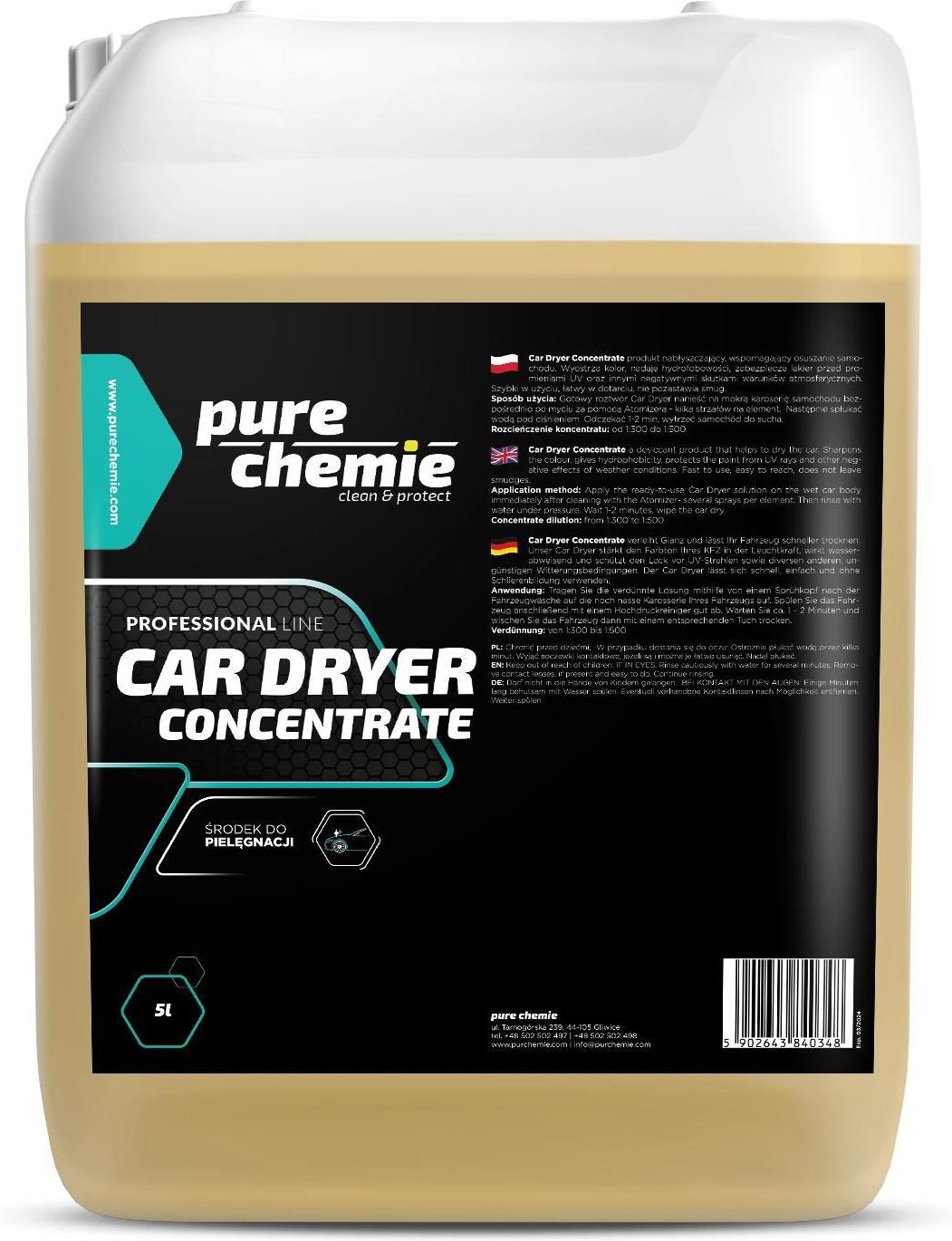 Pure Chemie Car Dryer Concentrate Wosk Na Mokro Wspomaga Osuszanie Samochodu 5L Proszowice