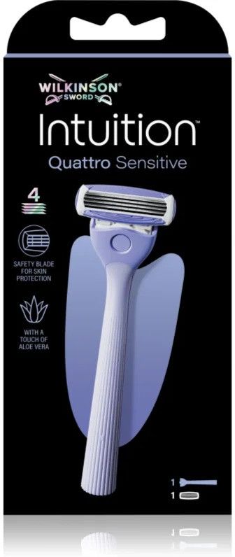 Wilkinson Sword Intuition Quattro Sensitive, 1 szt., Golenie dla kobiet, Maszynka do golenia Wilkinson Sword Intuition zapewni Twojej skórze doskonale gładkie golenie. Właściwości: goli szybko i łatwo dostosowuje się do krzywizn ciała nie podrażnia skóry głowica maszynki jest wymienna zapewnia dokładne golenie i precyzyjny efekt łatwa manipulacja Sposób użycia: Użyj pianki do golenia lub kremu i następnie ogol skórę długimi, delikatnymi pociągnięciami. Głowicę golącą wymień na nową, gdy tylko zużyją się paski nawilżające lub stępią ostrza. Głowicę maszynki możesz myć pod bieżącą wodą.