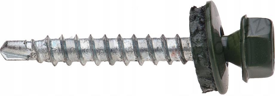 PARAMETRY: WKRĘT FARMERSKI ETANCO DO KONSTRUKCJI DREWNIANEJ Średnica [D]: 4.8 mm Długość [L]: 50 mm Łeb: sześciokątny, kluczy 8 Kolor: RAL 6020, zielony Ilość w opakowaniu jednostkowym (opJ): 100 sztuk Materiał Podkładki: Stal węglowa, ocynkowana Średnica podkładki: 14mm Grubość powłoki cynkowej: 12μm Dura.zinc Grubość powłoki lakierniczej: 50μm Klasa korozyjności środowiska: C3 Maksymalna grubość mocowanego materiału: 27 mm Minimalna głębokość zakotwienia łącznika: 20mm Maksymalna zdolność wiercenia: 2x1,00 mm Moment dokręcający: 3 Nm Zalecana prędkość obrotowa: 1800 rpm OPIS: Wkręt Farmerski ETANCO został zaprojektowany do mocowania blach stalowych do konstrukcji drewnianej. Wykonany jest ze stali węglowej utwardzanej powierzchniowo, ocynkowany elektrolitycznie 12um dura.zinc. Wyposażony w zredukowany punkt wiercący. Gwarantuje optymalne przewiercanie w krótkim czasie. Wkret ma zamontowaną stalową podkładkę, której kształt zapewnia właściwe ułożenie materiału uszczelniającego EPDM. Uszczelka EPDM, po zamontowaniu, poprzez wulkanizowanie się na blasze gwarantuje szczelne połączenie, ponadto nie traci elastyczności. Jest odporna na warunki atmosferyczne i promieniowanie UV. Firma TRÓJKA jest oficjalnym partnerem firmy ETANCO. Kategoria: Wkręty do blach oraz nity Powłoka lakierowana Powder.coat 50 µm dodatkowa ochrona antykorozyjna idealna dopasowanie do koloru pokrycia dachowego UV stabilizatory - niezmienność koloru nawet po kilkunastu latach. Podkładka EPDM wykonana z najlepszego materiału uszczelniającego EPDM nie traci elastyczności bardzo długi okres starzenia, po zamontowaniu sama wulkanizuje się na blachę, tworząc szczelne łącze. Podkładka zachowuje swoje właściwości pod wpływem temperatur w przedziale -50oC do +100oC. Powłoka cynkowa Dura.zinc o grubości 12 µm zapewnia zabezpieczenie przeciw rdzy. Końcówka samowiercąca Drill.point zapewnia optymalne przewiercenie blachy bez jej zbędnego uszkodzenia. Ochronna warstwa powłoki cynkowej nie zdziera się podczas przewiercania blachy