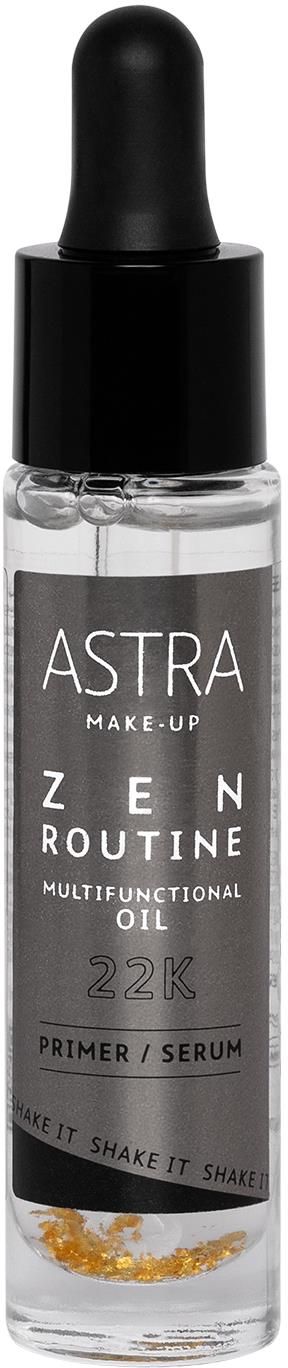 ASTRA Zen Routine Multifunkcyjny Olejek do Twarzy 13ml Multifunkcyjny olejek pochodzi od firmy Astra z serii Zen Routine. Kosmetyk może być stosowany jako baza pod makijaż. Doskonale nawilża, przygotowuje skórę na przyjęcie kosmetyków kolorowych. Przedłuża trwałość makijażu. Produkt może pełnić również funkcję serum. Wzbogacony o 22 karatowe złoto, świetnie pielęgnuje skórę. Pojemność: 13ml