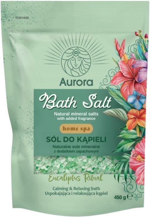 Aurora Spa sól do kąpieli Eukaliptus 450g AURORA Sól do Kąpieli - Domowe SPA o zapachu Eucaliptus Ritual to wyjątkowy produkt, który przeniesie Cię w świat relaksu i odnowy w zaciszu Twojej łazienki. W eleganckim opakowaniu o wadze 450 g, ta sól wprowadza do każdej kąpieli aromatyczny i kojący zapach eukaliptusa, który działa odprężająco na ciało i umysł. Orzeźwiający Zapach Eucaliptus Ritual to intensywny i świeży aromat eukaliptusa, który nie tylko odświeża, ale również działa kojąco na zmysły. Idealny do stworzenia relaksującej atmosfery, która pomoże Ci zregenerować siły po długim dniu. Pielęgnacja Skóry Po kąpieli skóra staje się gładka, miękka i przyjemna w dotyku. Relaksujący Efekt Dodanie soli do wody pozwala na rozluźnienie mięśni i złagodzenie napięcia, co czyni każdą kąpiel nie tylko przyjemnością, ale także skutecznym sposobem na relaksację po stresującym dniu. Idealne do domowego SPA Sól do kąpieli AURORA to doskonały element, który wzbogaci Twój rytuał pielęgnacyjny. Umożliwia stworzenie wyjątkowej atmosfery SPA w domowym zaciszu, gdzie możesz poczuć się jak w luksusowym spa.