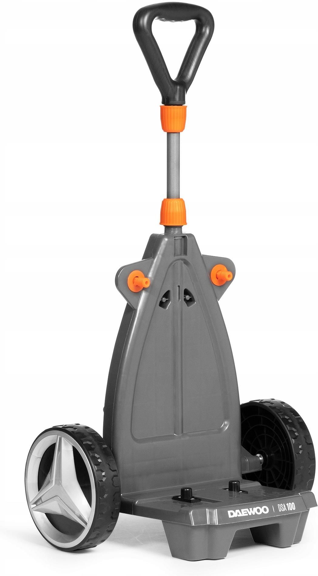 DSA 100 Opis szczegółowy Wózek kompatybilny z opryskiwaczami DAEWOO DSA 1621Li i DSA 2021Li (oraz zestawami SET) Solidne mocowanie opryskiwacza na platformie dzięki wydłużonym śrubom Stabilna podstawa i duże koła zapewniają wygodne ustawienie i transport Wysokiej jakości tworzywo sztuczne odporne na korozję – trwała konstrukcja Teleskopowy uchwyt dostosowany do każdego wzrostu użytkownika Złączka do podłączenia węża opryskiwacza – całkowita długość do 4,5 m Dane techniczne W zestawie wąż tak Uchwyt teleskopowy tak Materiał Plastik, Metal Wymiary 380х250х490 mm Waga netto 2,65 kg Waga brutto 3,2 kg Zestaw zawiera Wózek, Wąż 3 m, Złączka do podłączenia węża opryskiwacza, Instrukcja montażu Teleskopowa rączka Umożliwia łatwą regulację długości uchwytu do wzrostu użytkownika, zapewniając komfort i wygodę transportu opryskiwacza, a także jego kompaktowe przechowywanie. Wygodny system mocowania Skutecznie unieruchamia opryskiwacz na wózku, zapobiegając jego przesuwaniu się i przewracaniu podczas transportu, co gwarantuje stabilne przewożenie oraz ochronę urządzenia przed uszkodzeniami. 3 M Wąż W Zestawie Wąż o długości 3 metrów w zestawie z wózkiem zapewnia wygodne i efektywne rozpylanie roztworów na dużych powierzchniach, pozwalając na opryskiwanie roślin bez konieczności częstego przemieszczania sprzętu.