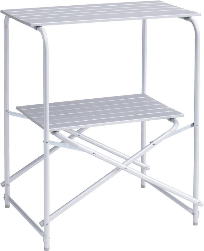 Główne informacje: Rodzaj: szafka kuchenna; Sprzęt: Właściwości: z torbą do przechowywania; Materiał: Materiał obicia: 100% poliester; Materiał obramowania: aluminium; Wymiary: Wymiary produktu (dł. x szer. x wys.): 46 x 66 x 80; Waga produktu: 3 kg; Maksymalny udźwig: 30 kg; Wielkość opakowania (dł. x szer. x wys.): 80 x 48 x 9; Szczegóły: lekka i stabilna rama aluminiowa, Łatwy do czyszczenia zwijany blat roboczy, Podłoga aluminiowa do zwijania, Zawiera torbę do łatwego przechowywania i transportu