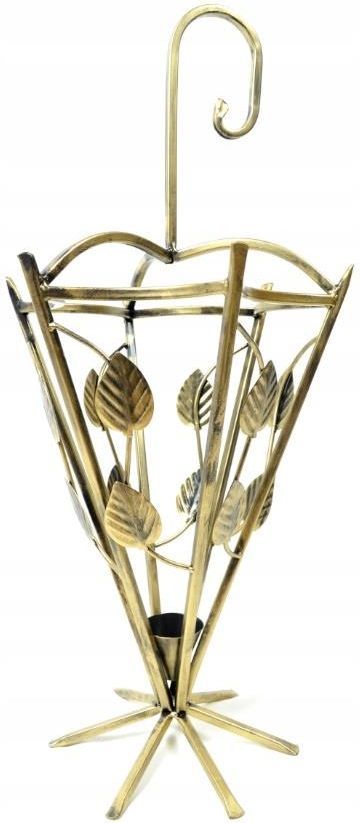 PARASOLNIK met 851 Parametry produktu wysokość: 71cm szerokość: 34cm głębokość: 34cm kolor: złota patyna Parasolnik jest idealnym dodatkiem do naszego przedpokoju, który oprócz funkcji praktycznej, może w niebanalny sposób dopełnić wyglądu naszego korytarza.Taki element dekoracyjny sprawdzi się w każdy wnętrzu, zarówno mieszkalnych jak i usługowym. Zapewni możliwość przechowywania parasoli, przy czym nie zajmie wiele przestrzeni. Stojak dodatkowo posiada miskę na ociekanie, dzięki czemu nie musimy się martwić o mokre plamy na naszych panelach bądź płytkach. Charakteru vintage dodają mu piękne ornamenty oraz barwa uzyskana metodą malowania proszkowego i patynowana. Cechy produkty materiał wykonania: metal. malowany proszkowo, nie wymaga montażu, Trwała konstrukcja, jednolite dno, estetyczny, uniwersalny wygląd. Parasolnik w 100% został wykonany w Polsce. Ze względu na sposób produkcji, produkt może nieznacznie różnić się od podanych wymiarów (ok 1-2 cm). Stojak posiada praktyczny, wyjmowany pojemniczek na ściekająca wodę.