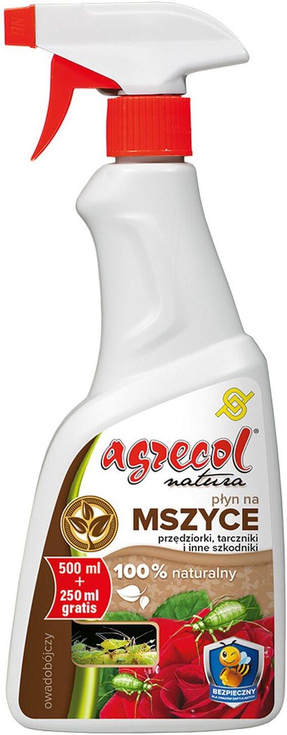 Płyn na mszyce i inne szkodniki Preparat na mszyce i inne szkodniki marki Agrecol to gotowy do użycia płyn wyprodukowany na bazie naturalnych olejów roślinnych. Jest w 100% naturalny. Przeznaczony do eliminacji szkodliwych owadów w tym: mszyc, mączlików, wełnowców, miseczników i tarczników. Sprawdza się również w zwalczaniu roztoczy oraz przędziorków we wszystkich stadiach rozwojowych (jaja, larwy, osobniki dorosłe). Preparat na mszyce nie zawiera chemicznych pestycydów. Jest w pełni bezpieczny dla roślin, środowiska, zwierząt, a także ludzi stosujących preparat. Stosowany do ochrony roślin ozdobnych, sadowniczych oraz warzyw i ziół. Warzywa, owoce lub zioła po zabiegu wystarczy jedynie umyć w wodzie przed spożyciem. Forma preparatu na mszyce jest wygodna w stosowaniu i pozwala w naturalny sposób walczyć ze szkodnikami roślin, zarówno w domu, jak i w ogrodzie.
