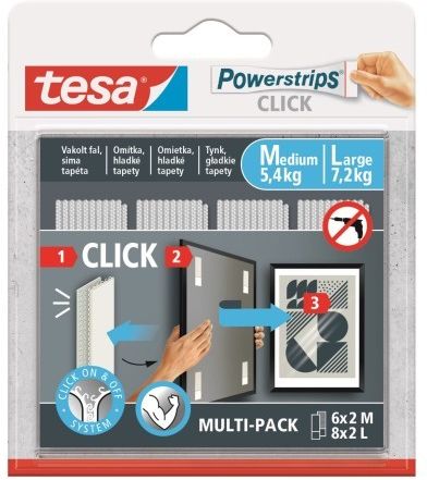 Tesa Rzepy Samoprzylepne Powerstrips Click 6 par M + 8 par L (4063565408977) Pruchnik