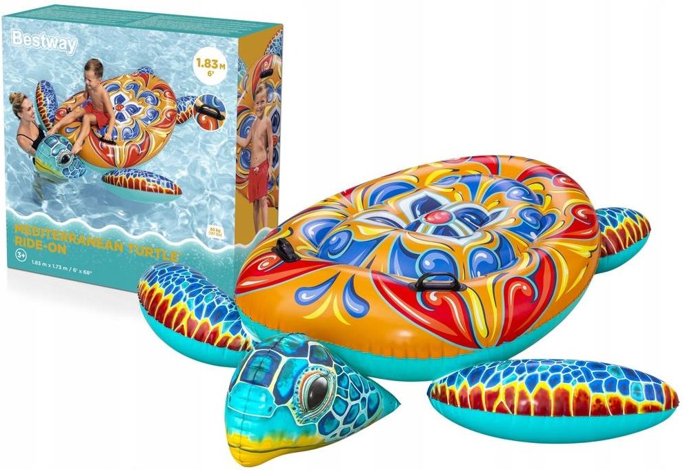 PONTON MATERAC NADMUCHIWANY ŻÓŁW DO PŁYWANIA BASENU DLA DZIECI 183x173 CM Symbol towaru: #09512 🔷 ŁATWY TRANSPORT 🔷 SZYBKIE POMPOWANIE 🔷 ŁATKA NAPRAWCZA W ZESTAWIE 🔷 BEZPIECZNE ZAWORY 🔷 OD 3 ROKU ŻYCIA 🔷 UDŹWIG DO 85 KG 🐢 TIDAL TURTLE – ZABAWA NA FALI PRZYGODY! 🐢 Szukasz produktu, który zapewni Twojemu dziecku niezapomniane chwile nad wodą? Nadmuchiwany żółw to idealne połączenie realistycznego wyglądu i funkcjonalnego wykonania. Dzięki dużej powierzchni i nośności do 85 kg, będzie idealnym towarzyszem wodnych szaleństw dla dzieci już od 3. roku życia. Wykonany z wytrzymałego PVC i wyposażony w 2 komory powietrzne, zapewnia trwałość i bezpieczeństwo. Dzięki solidnym uchwytom dziecko może bezpiecznie trzymać się podczas zabawy, a wbudowane zawory bezpieczeństwa gwarantują łatwe i szybkie pompowanie. Dodana do zestawu łatka naprawcza pozwoli błyskawicznie wrócić do zabawy w razie drobnych uszkodzeń! 🔥 DOSKONALE SPRAWDZI SIĘ: 🔥 🔥 W basenie ogrodowym - daje dzieciom możliwość przeżycia wodnej przygody w bezpiecznym otoczeniu. 🔥 Na plaży - miękka powierzchnia idealnie nadaje się do wypoczynku i zabawy na piasku oraz przy brzegu wody. 🔥 Na wakacyjnym wyjeździe - lekka i kompaktowa forma po spuszczeniu powietrza ułatwia transport. 🔥 W plenerowych kąpieliskach - intensywna kolorystyka i uchwyty zwiększają widoczność i bezpieczeństwo. 🔥 W zabawie kreatywnej - realistyczny wygląd żółwia rozwija wyobraźnię i zachęca do opowiadania historii. 🔥 W zabawach grupowych - duża powierzchnia umożliwia wspólną zabawę kilkorga dzieci. SPECYFIKACJA Wymiary po napompowaniu: 186 x 168 x 42 cm Wymiary po spuszczeniu powietrza: 183 x 173 cm Maksymalne obciążenie: 85 kg Materiał: PVC Komory powietrzne: 2 Wiek użytkownika: od 3 lat Wzór: żółw Kolor: różnokolorowy Dodatkowe wyposażenie: łatka naprawcza ŁATWE NADMUCHIWANIE Prosty mechanizm pompowania sprawia, że przygotowanie żółwia do użycia jest szybkie i bezproblemowe. Zawory bezpieczeństwa: umożliwiają szybkie napełnienie i spuszczenie powietrza. Intuicyjna obsługa: nawet dzieci z pomocą rodziców poradzą sobie z przygotowaniem zabawki. Bez specjalistycznej pompki: produkt można nadmuchać ustnie lub za pomocą prostych pompek ręcznych. DWA UCHWYTY Stabilne uchwyty po bokach żółwia zwiększają bezpieczeństwo dziecka podczas pływania i zabawy. Antypoślizgowe wykończenie: zapewnia lepszy chwyt mokrymi rękami. Ergonomiczne rozmieszczenie: dostosowane do pozycji siedzącej i leżącej. Wzmocniona konstrukcja: nie odkształcają się nawet przy intensywnym użytkowaniu. WYGODA I STABILNOŚĆ Produkt zaprojektowany z myślą o komforcie użytkowania – zarówno podczas pływania, jak i odpoczynku na wodzie. Ergonomiczny kształt: dopasowuje się do ciała dziecka. Szeroka powierzchnia: umożliwia bezpieczne siedzenie lub leżenie. Stabilne unoszenie się na wodzie: zapobiega przewracaniu się. WYTRZYMAŁY MATERIAŁ PVC Wysokiej jakości tworzywo gwarantuje, że produkt posłuży na wiele sezonów wodnych przygód. Odporność na uszkodzenia: niełatwo go przebić ani przetrzeć. Bezpieczny kontakt ze skórą: brak ostrych krawędzi czy szkodliwych substancji. Grubość materiału: wpływa na większą stabilność i sztywność konstrukcji. ATRAKCYJNY WYGLĄD Przyciągający wzrok projekt żółwia sprawia, że staje się on nie tylko zabawką, ale i ozdobą plaży czy basenu. Kolorowy nadruk: zachwyca dzieci i wyróżnia się na tle innych zabawek wodnych. Realistyczna grafika: dodaje efektu wow podczas zabawy. Sympatyczny wygląd: sprawia, że dzieci chętnie wracają do zabawy. ŁATKA NAPRAWCZA W ZESTAWIE Dzięki dołączonej łatce naprawczej możesz cieszyć się dłuższym użytkowaniem produktu bez stresu o drobne uszkodzenia. Błyskawiczna naprawa: pozwala szybko uszczelnić małe przebicia. Bez potrzeby wymiany: oszczędzasz czas i pieniądze na nowy produkt. Komfort psychiczny: zawsze masz możliwość naprawy pod ręką. KOMPAKTOWY PO ZŁOŻENIU Po spuszczeniu powietrza produkt zajmuje bardzo mało miejsca, dzięki czemu jest praktyczny w transporcie. Łatwe przechowywanie: zmieści się w plecaku, torbie lub walizce. Niewielka waga: nie obciąża bagażu ani pleców dziecka. Idealny w podróży: możesz zabrać go wszędzie – na wakacje, nad jezioro czy na działkę.