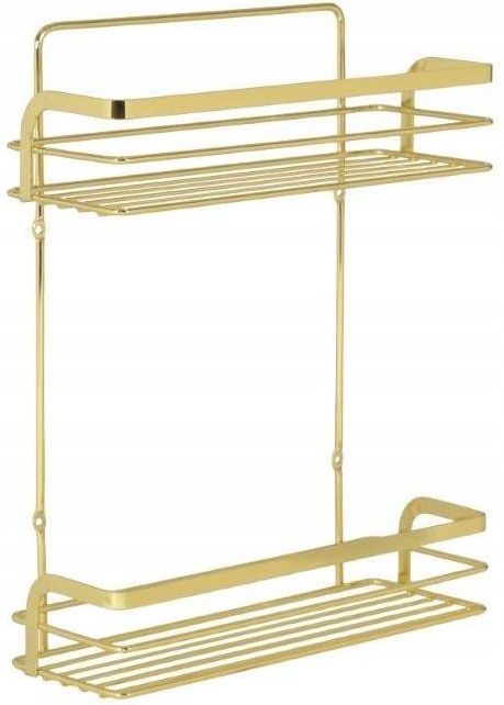 NIAGARA POLKA PODWOJNA ZLOTY Półki z serii NIAGARA dostępne są w różnych kształtach i wysokościach. Połyskujące złoto będzie doskonałym i praktycznym uzupełnieniem pomieszczeń w stylu nowoczesnym lub tradycyjnym. Dane techniczne: Kolor: złotySzerokość [mm]: 265Wysokość [mm]: 342Głębokość [mm]: 103Mocowanie na kołki rozporoweDwie pojemne półki 5901487057721 021356